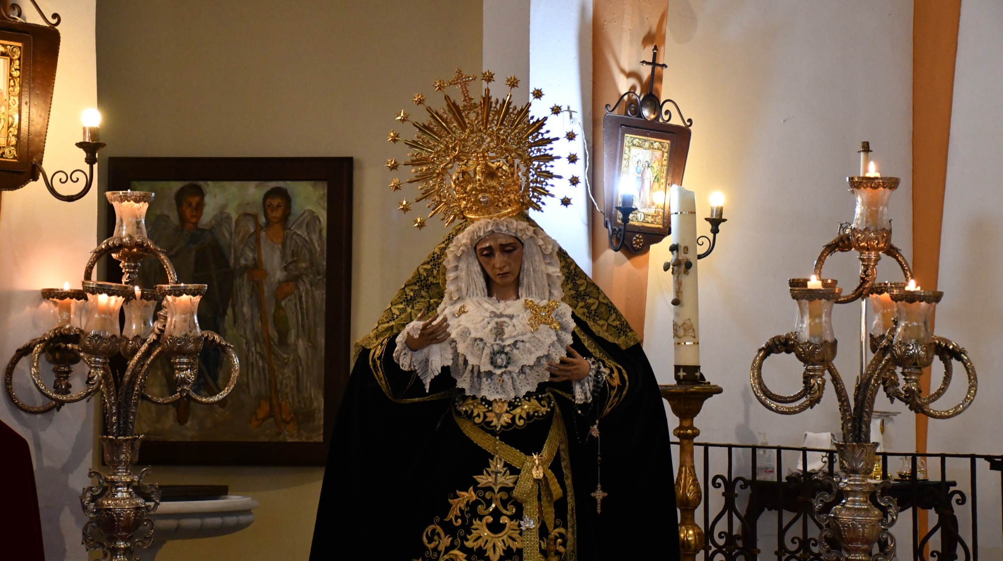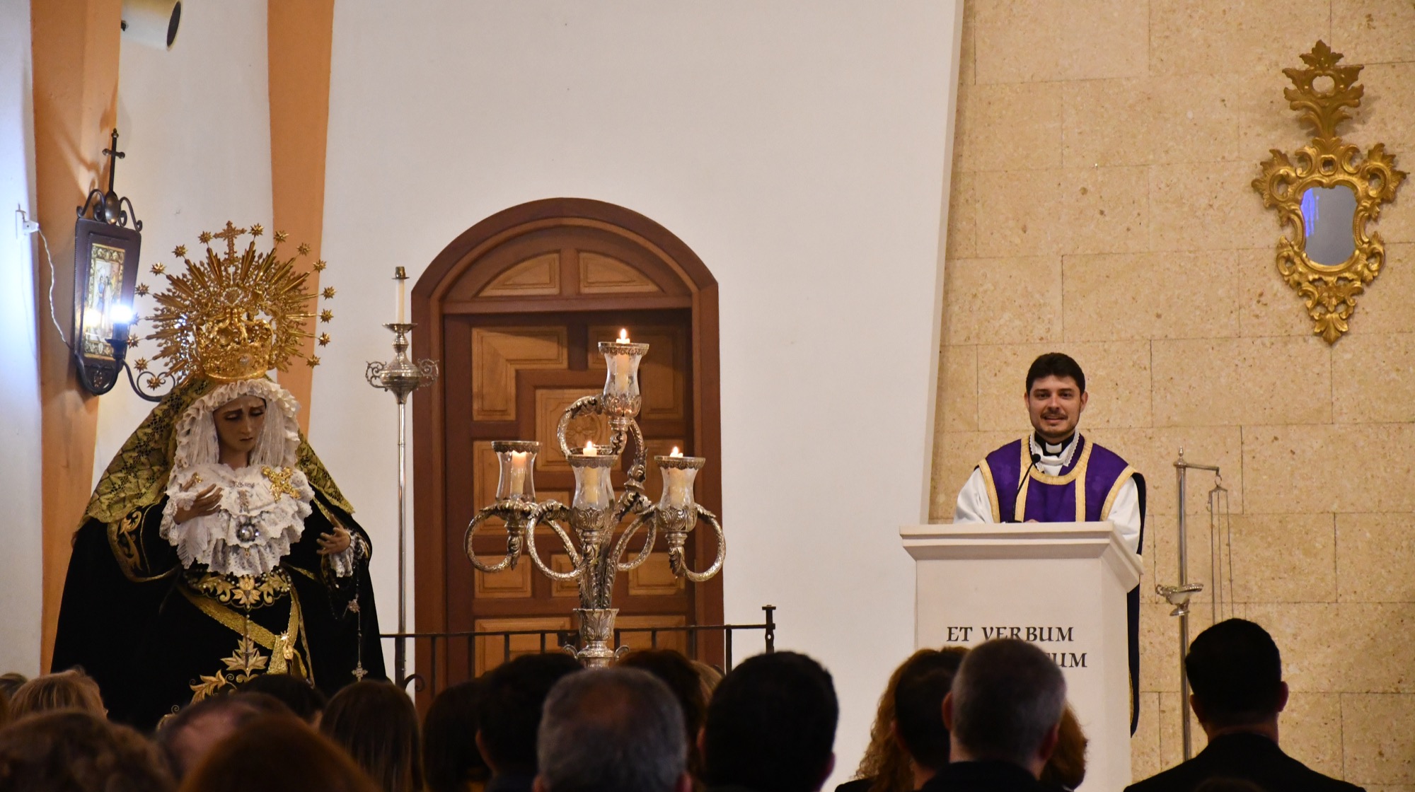 La Parroquia de Nuestra Señora del Rosario de Guadiaro ha acogido desde el miércoles el triduo de la Asociación Parroquial del Santo Entierro y Nuestra Señora de los Dolores. Este viernes ha tenido lugar la última de las misas, a la que asistieron varias autoridades municipales, y en la que se presentó el cartel de la Semana Santa de la barriada y, además, se llevó a cabo un besamanos a la imagen de la Virgen.