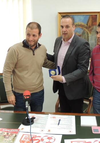 Tras su intervención, Abel García aprovechó la convocatoria para hacerle entrega al Ayuntamiento de la medalla del centenario que la Federación Andaluza le concedió al CD San Roque en reconocimiento por sus 50 años de historia, en un acto que tuvo lugar el pasado mes de diciembre en Chiclana de la Frontera. El presidente del club señaló que “entregamos esta medalla para que resida en el Ayuntamiento, que es donde tiene que estar”.
