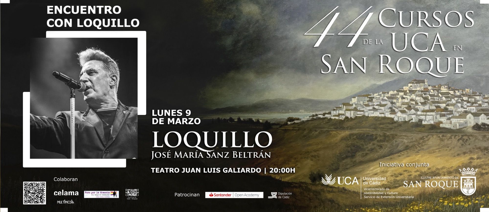 San Roque celebra del 9 al 19 de marzo la 44 edición de los Cursos de la Universidad de Cádiz, que constará con un encuentro con José María Sanz Beltrán (Loquillo); dos Seminarios, bajo los títulos Pacto Europeo de Migración y Asilo; y De tarimas Púlpito: la escuela y el magisterio español durante la segunda república, la dictadura y la transición; y varios actos paralelos, en forma de talleres, representación teatral y proyección de película.
