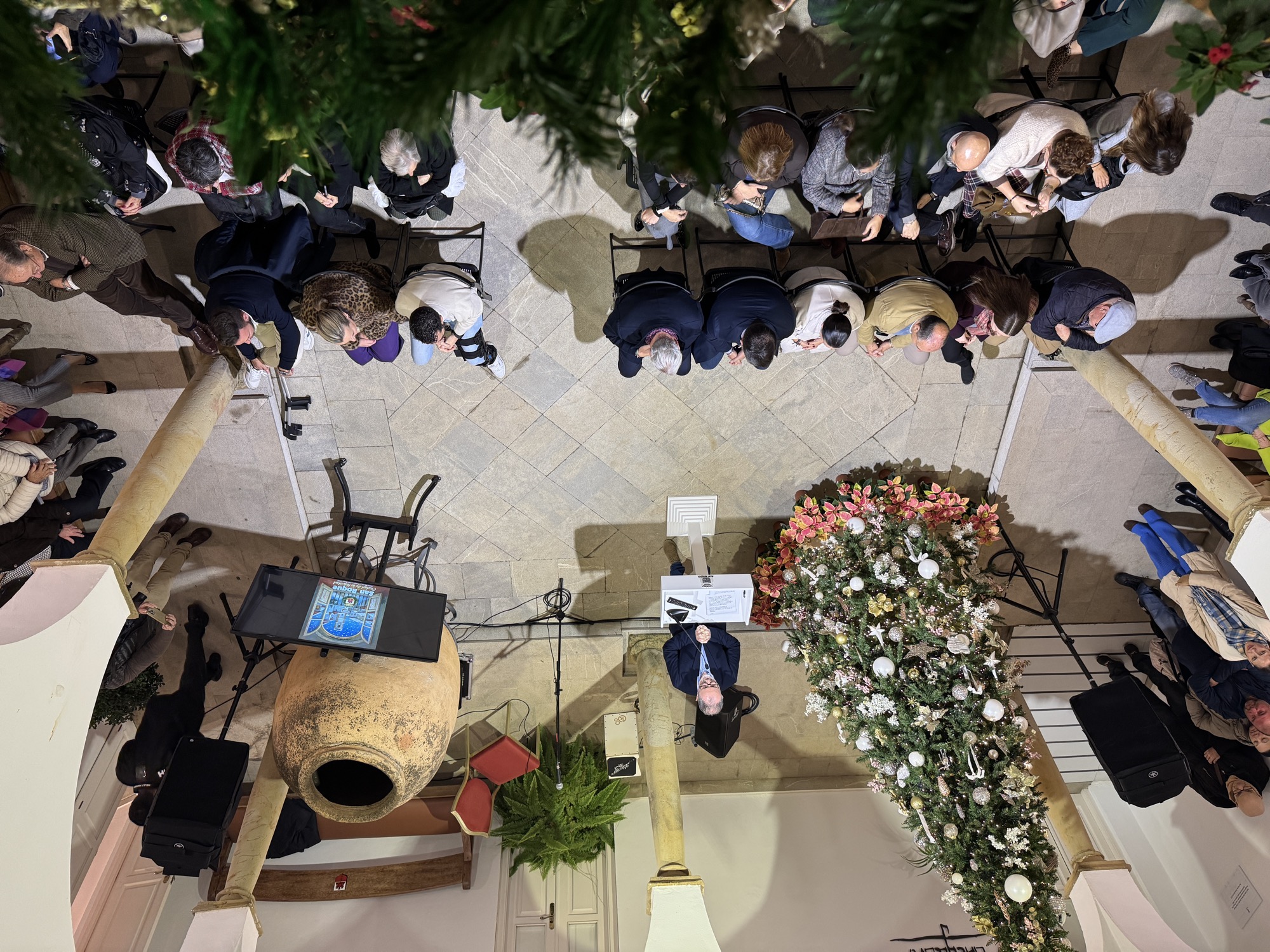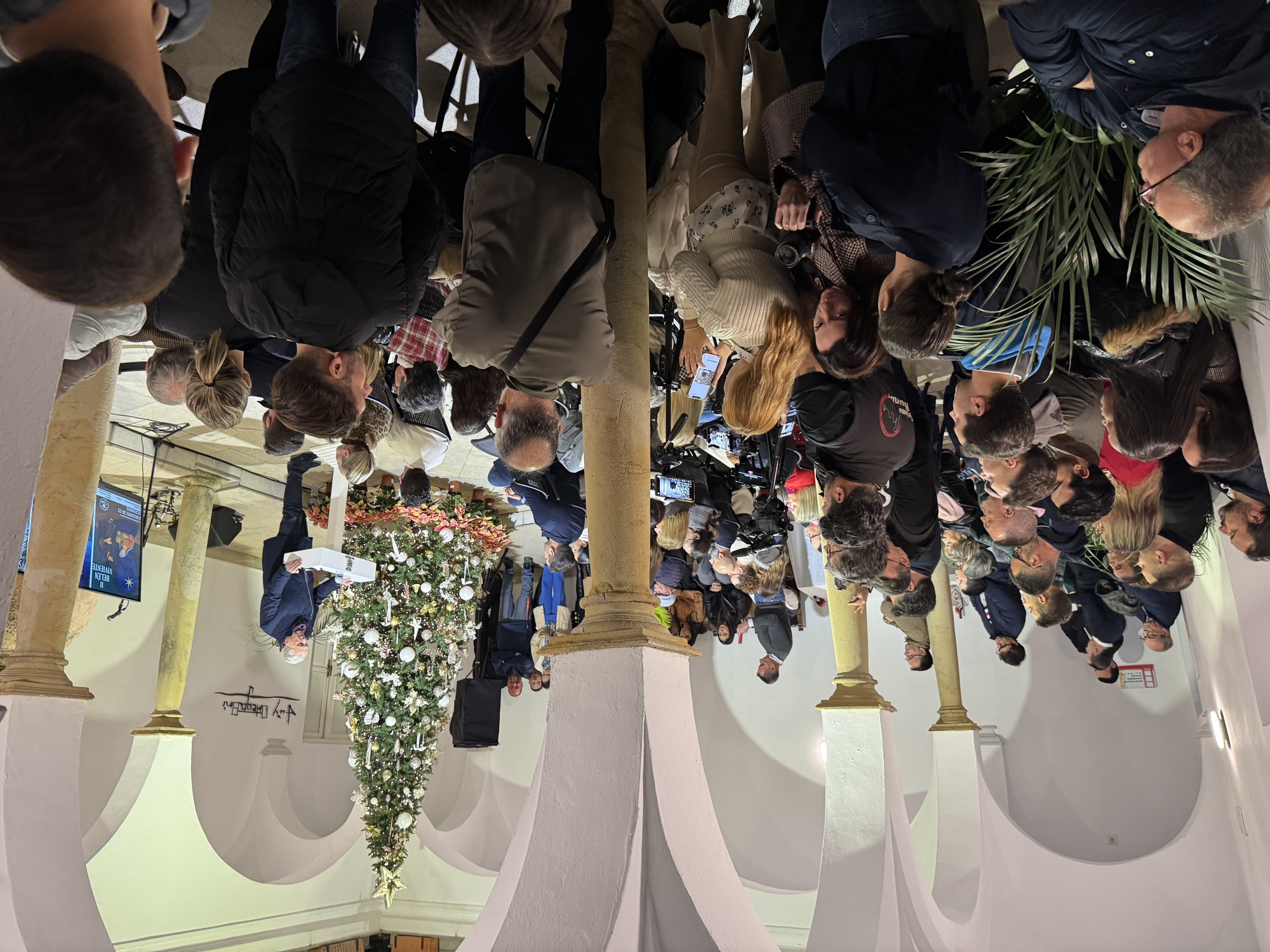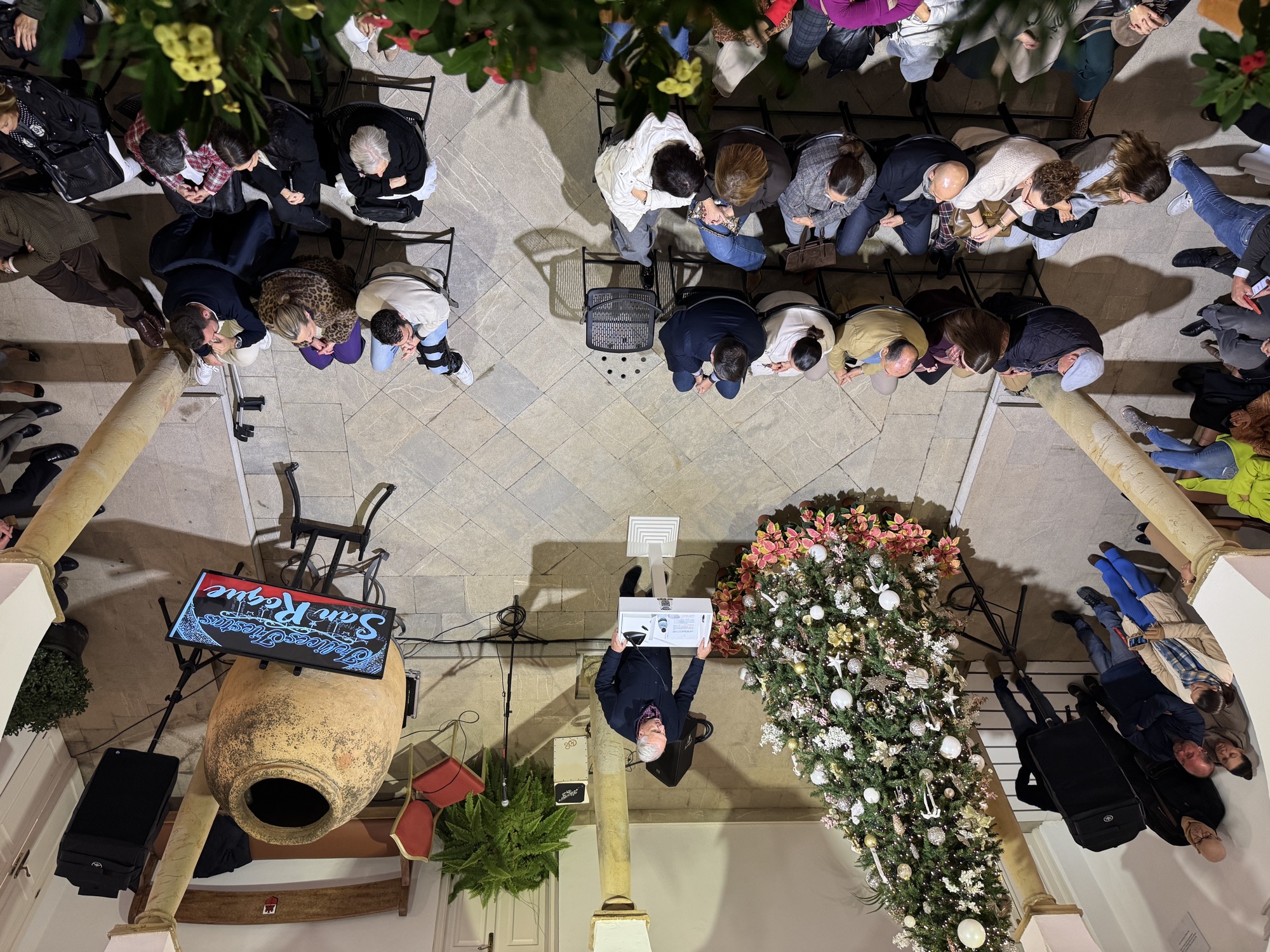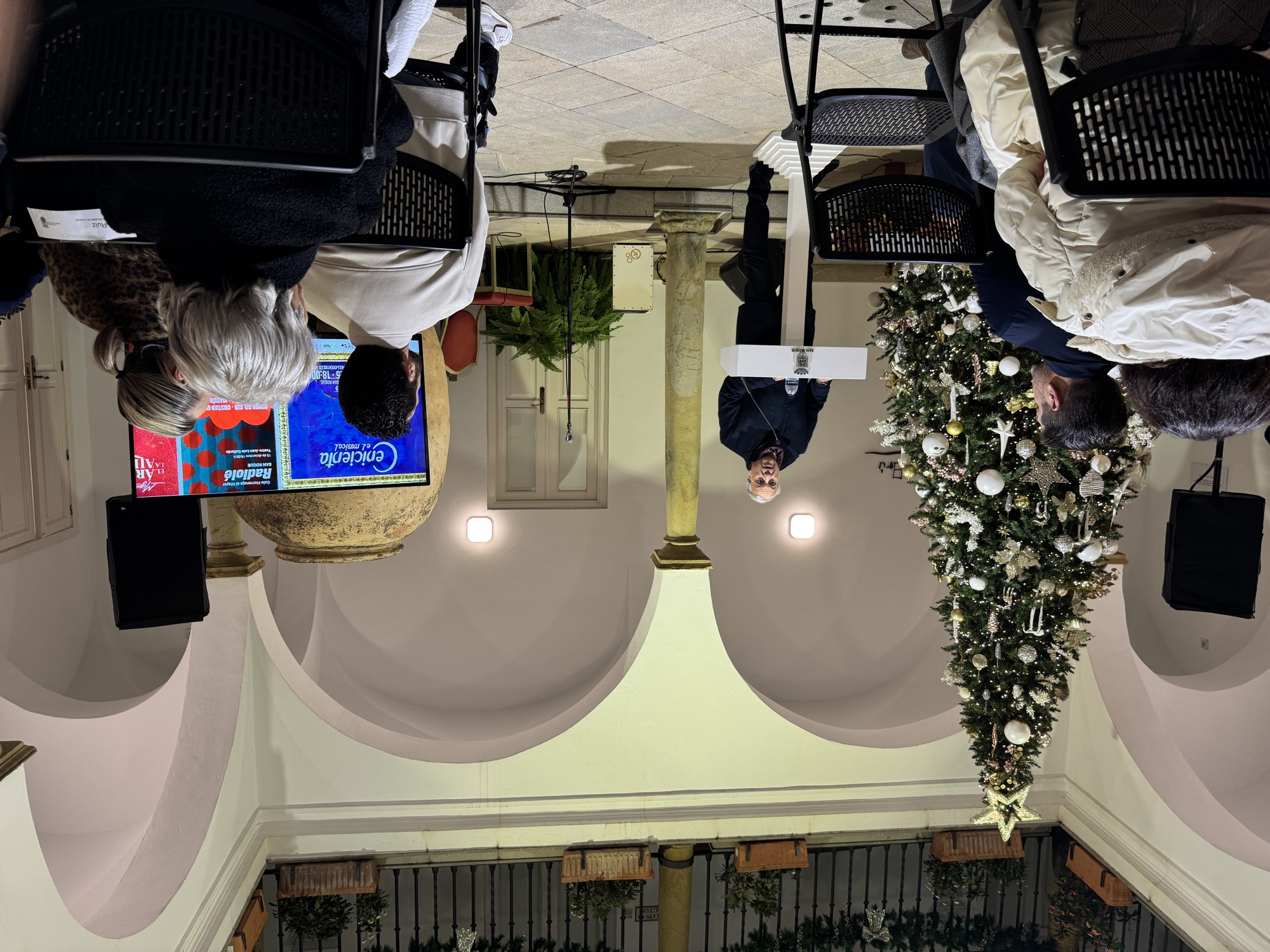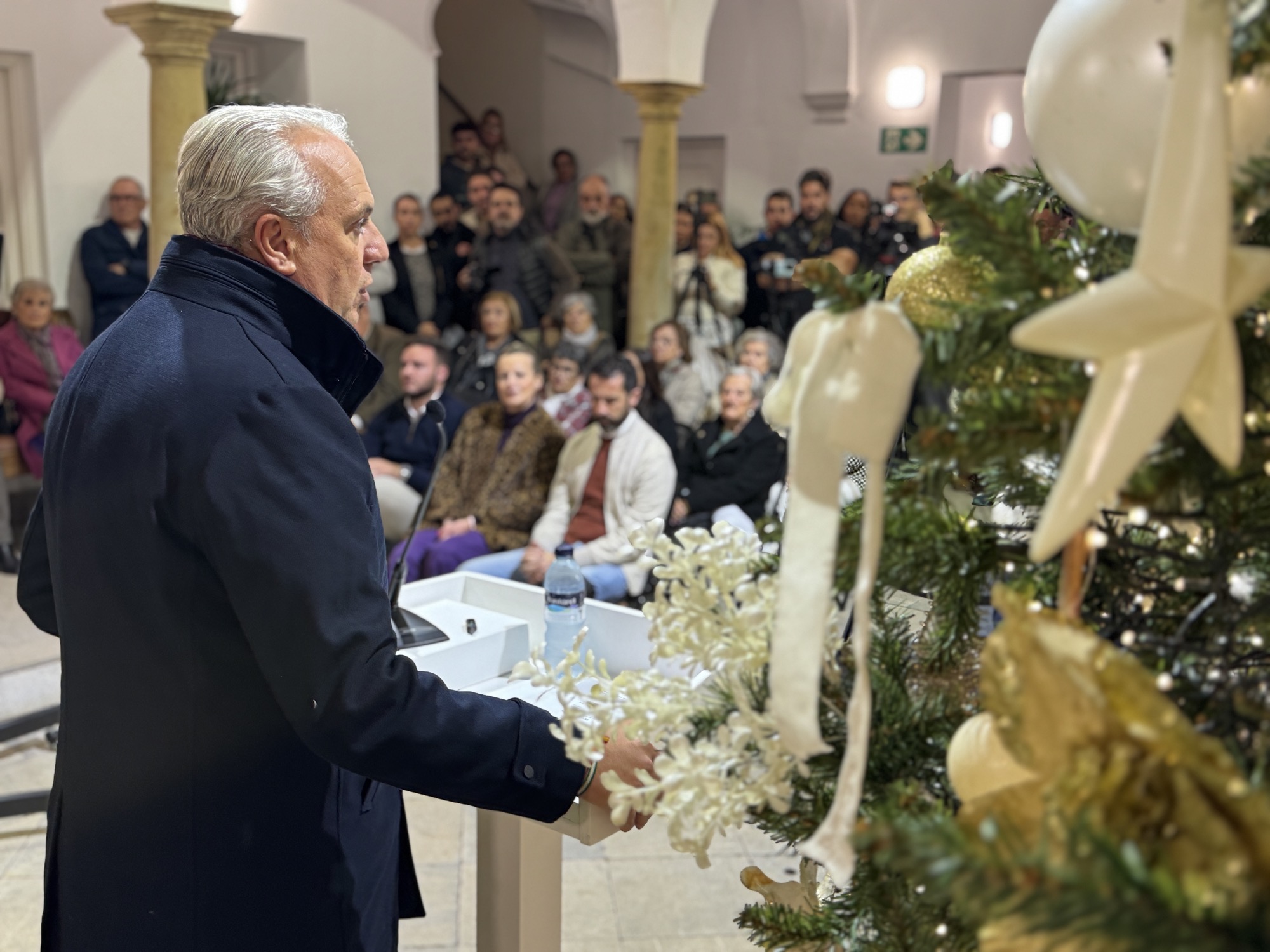 En la presentación, el alcalde señaló que “estas últimas semanas, en nuestros paseos por las calles y plazas, hemos visto cómo se iba engalanando San Roque y sus barriadas, se iban colgando las luces, los parques y jardines se llenaban de pascueros, o como en este Palacio de Gobernadores, con su árbol y esta decoración percibimos ya el ambiente navideño”.
