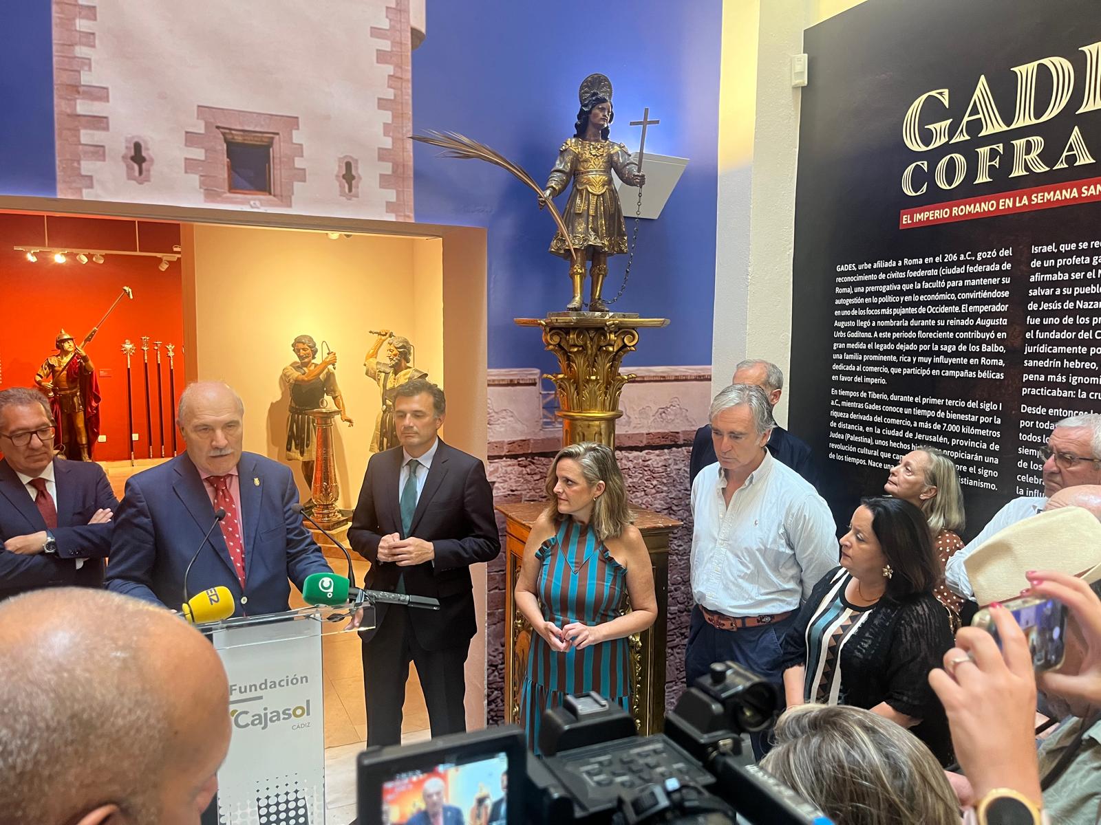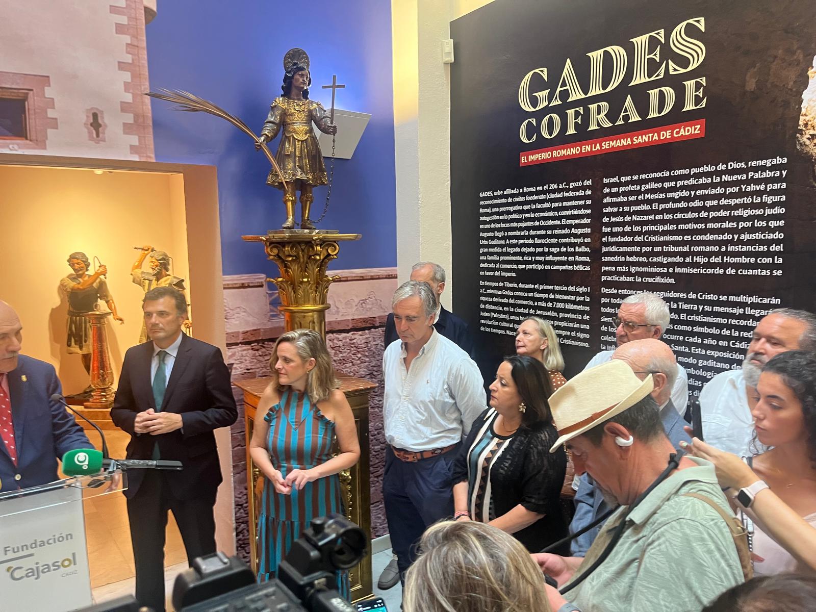 La teniente alcalde delegada de Tradiciones, María del Mar Collado, ha asistido a la inauguración de la exposición “Gades Cofrade. El Imperio Romano en la Semana Santa de Cádiz”. La muestra ha abierto hoy sus puertas en la sede de la Fundación Cajasol en Cádiz y cuenta con varias piezas del imaginero sanroqueño Ortega Bru.