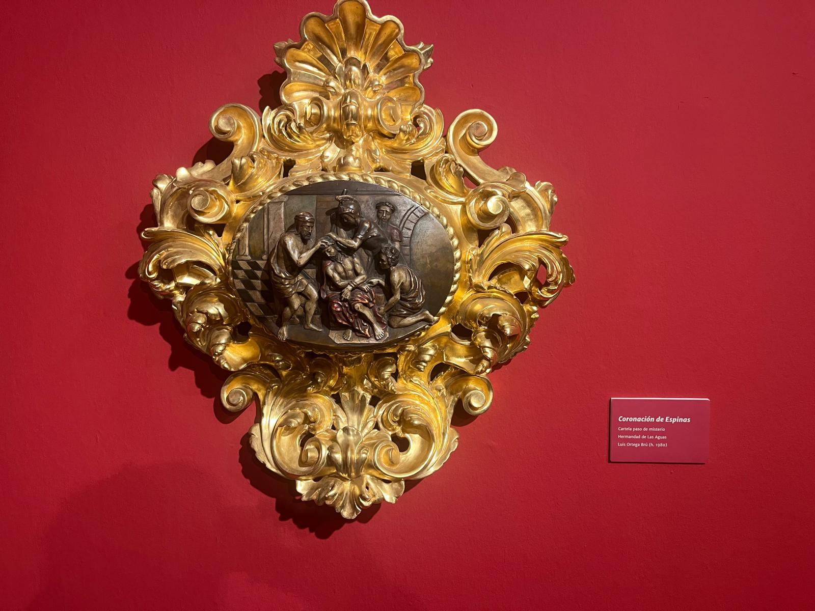 Varias de las piezas expuestas son obra del insigne imaginero sanroqueño Luis Ortega Bru, entre ellas, “Coronación de espinas” una “Cartela de paso de misterio” de la Hermandad de las Aguas.