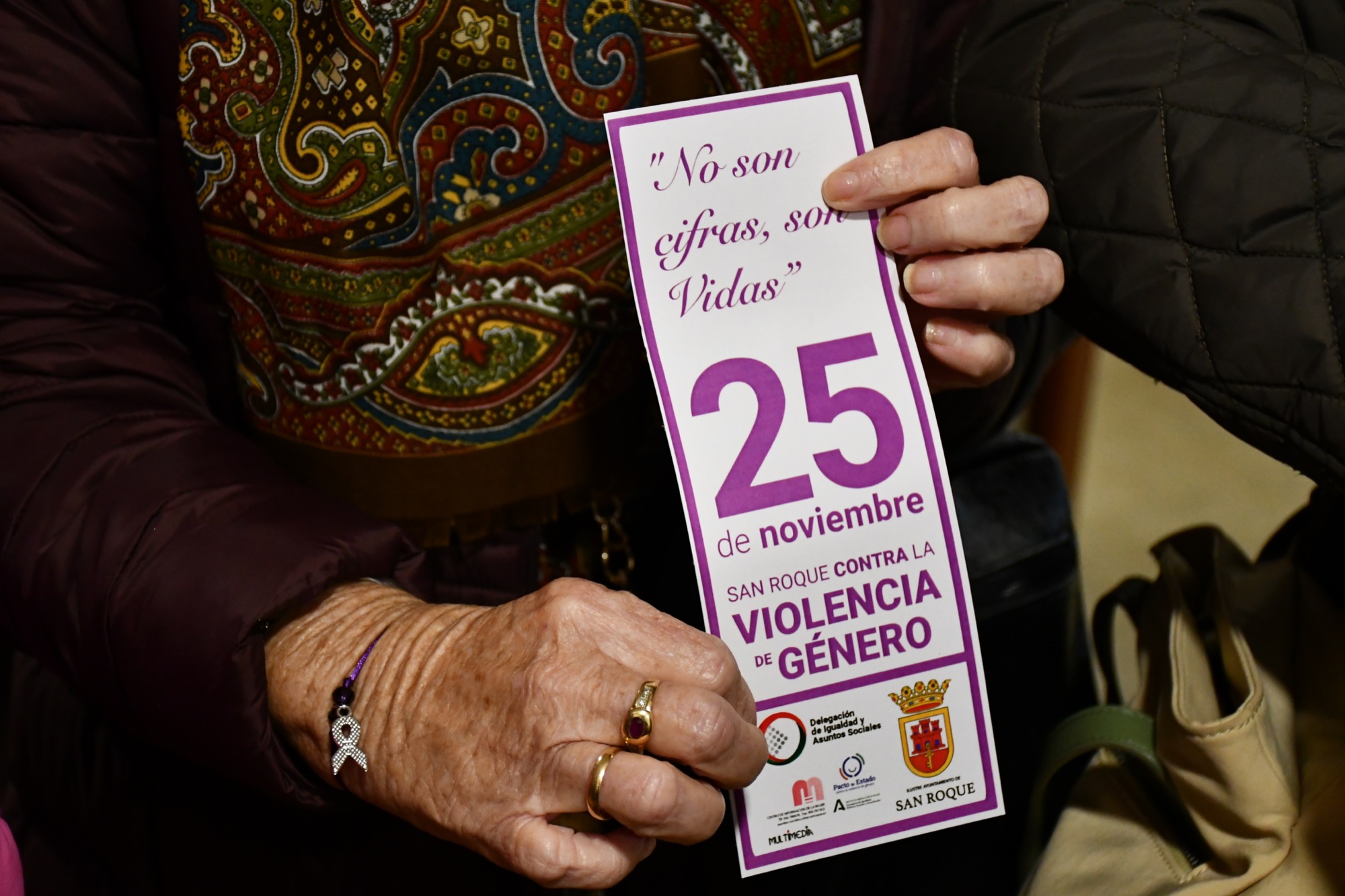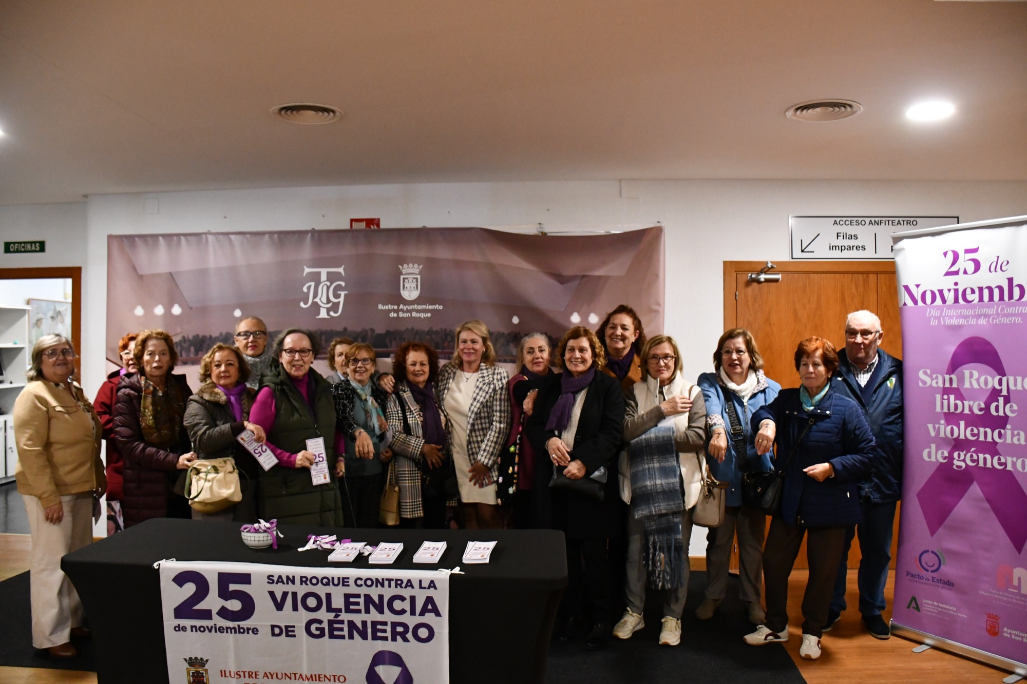 San Roque muestra este 25 de noviembre su total rechazo a la violencia machista con una gran asistencia a los actos organizados por el Ayuntamiento y por distintos colectivos. Así, en la Plaza de las Constituciones se leyó un manifiesto y se izó una bandera; el teatro acoge dos conferencias a lo largo de la jornada; y en Taraguilla y Estación las asociaciones de mujeres de ambas barriadas han llevado a cabo actividades reivindicativas.