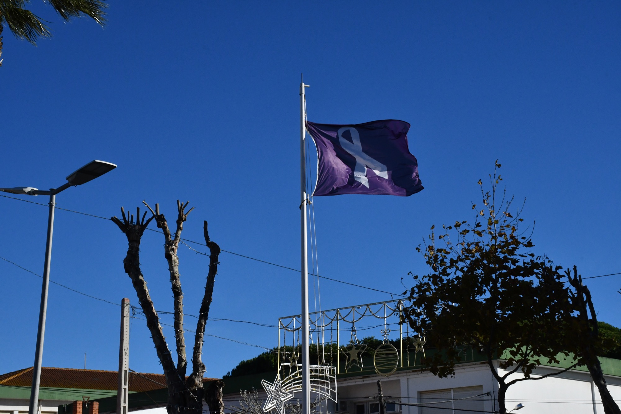 Sin embargo, la primera actividad de la jornada corrió a cargo de la Asociación de Mujeres Las Flores 2.0, una lectura de manifiesto, minuto de silencio e izada de bandera, un acto al que asistieron estudiantes del CEIP Taraguilla, llevando pancartas de color violeta, y representantes del AMPA del centro.
