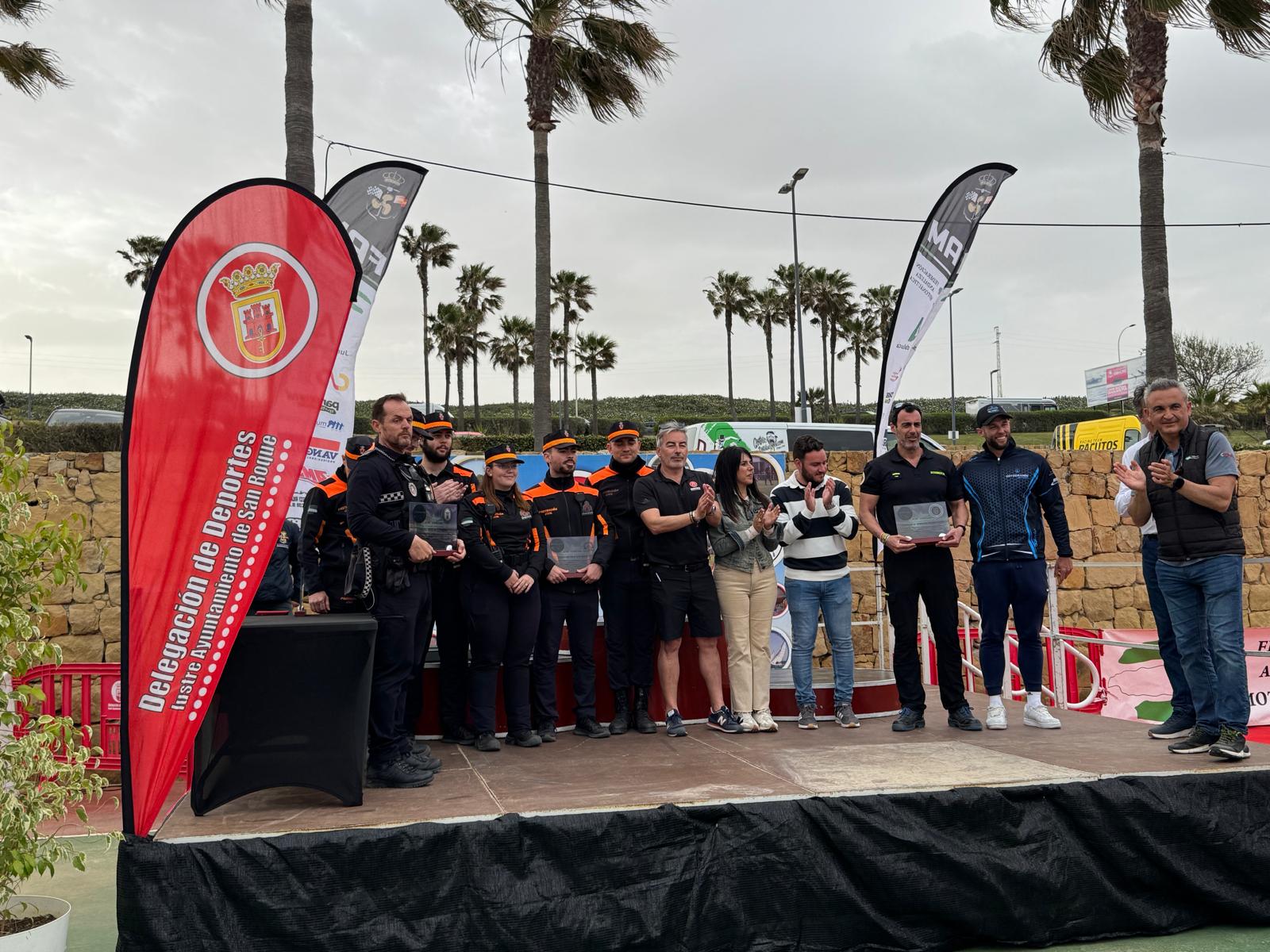 El teniente de alcalde de Deportes, Fernando Vega, junto a la delegada de zona, Eva Gil y la edil Belén Jiménez, saludaron a algunos de los pilotos, entre ellos Daniel Stiers, que lleva el escudo de San Roque en su indumentaria.