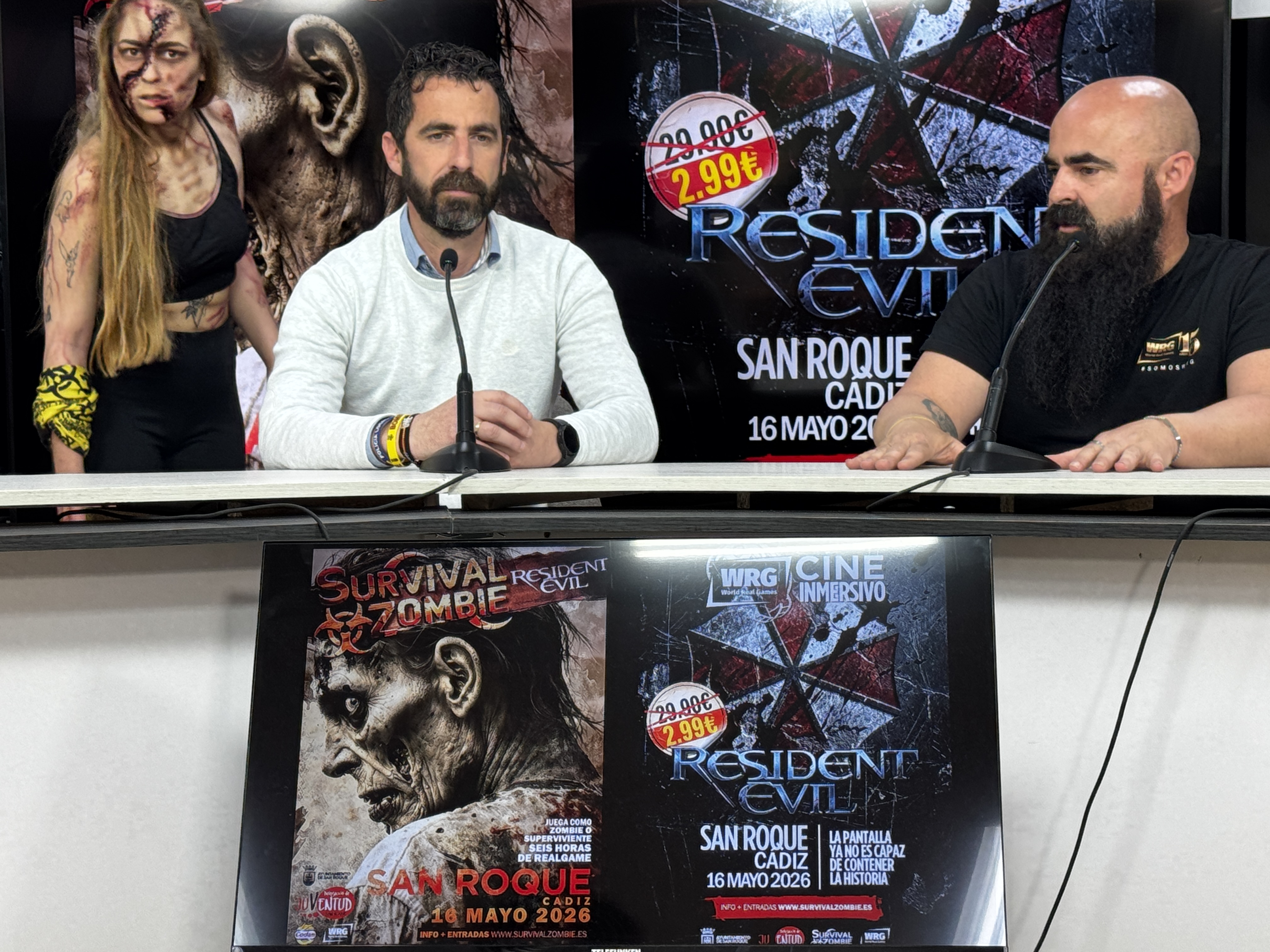 El teniente de alcalde delegado de Juventud, David Ramos, junto al director del evento, Juan Sánchez ha presentado el “Survival Zombie”, una actividad de rol en vivo que se desarrollará un año más en las calles y plazas de San Roque en la noche del 16 de mayo. Este año además con la novedad de un cine inmersivo de la película Resident Evil.