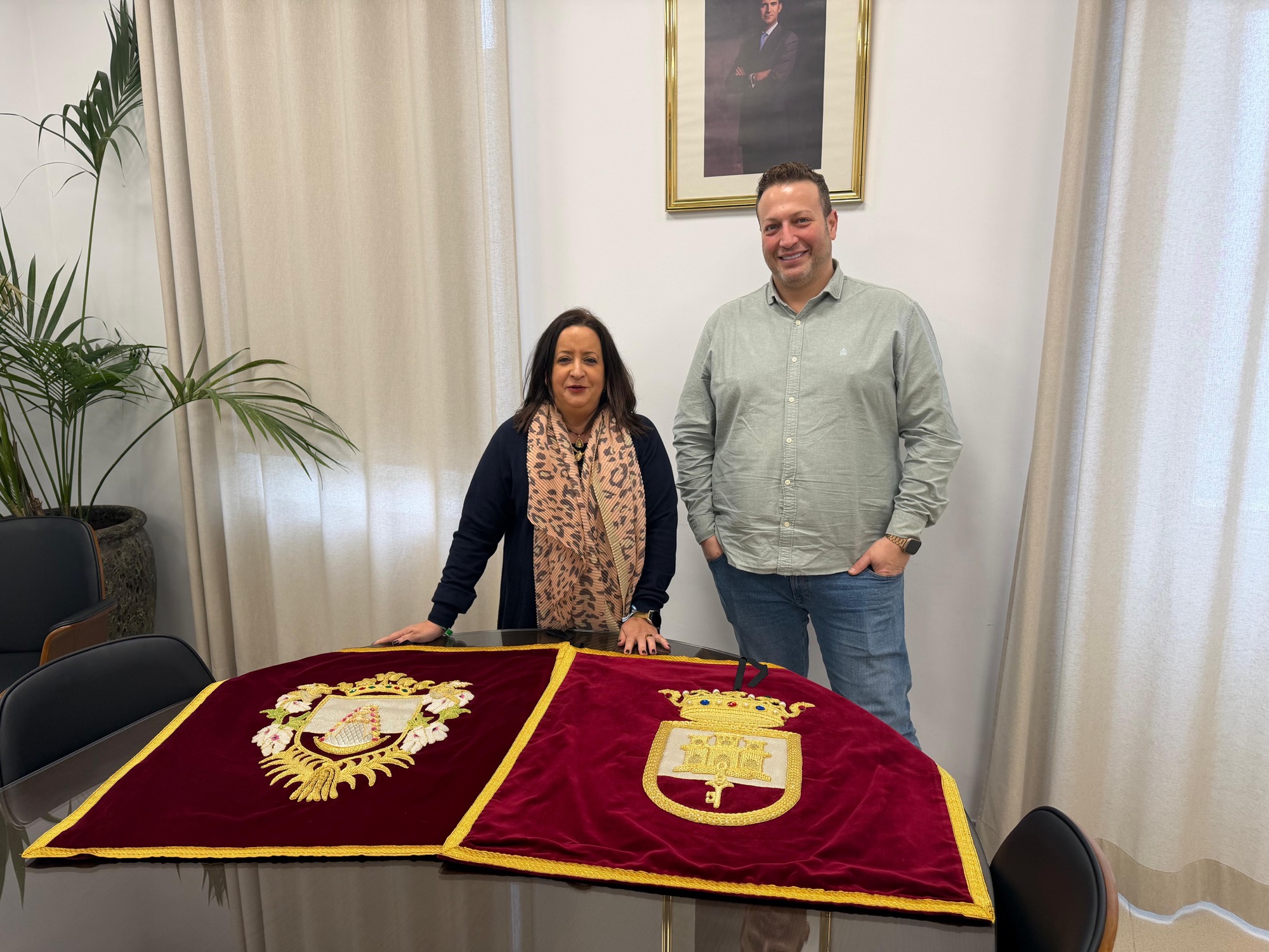 El artesano Adrián Adrover ha entregado a la teniente de alcalde de Tradiciones, María del Mar Collado, los escudos bordados correspondientes a la Hermandad de Nuestra Señora del Rocío y del Ayuntamiento de San Roque. En el primer caso, se trataba del último pendiente de las entidades que integran el Consejo Local de Hermandades y Cofradías, mientras que el del Consistorio servirá para sustituir al utilizado hasta ahora, que se encontraba muy deteriorado.