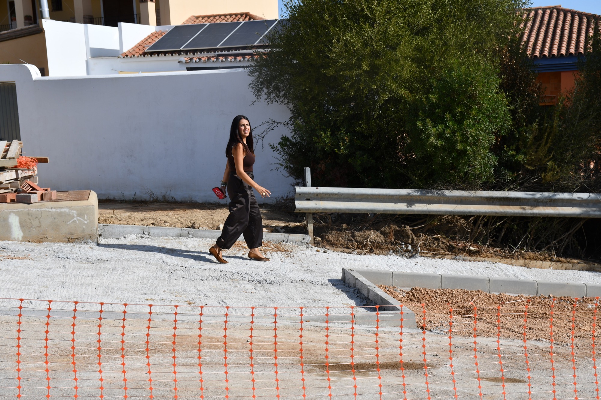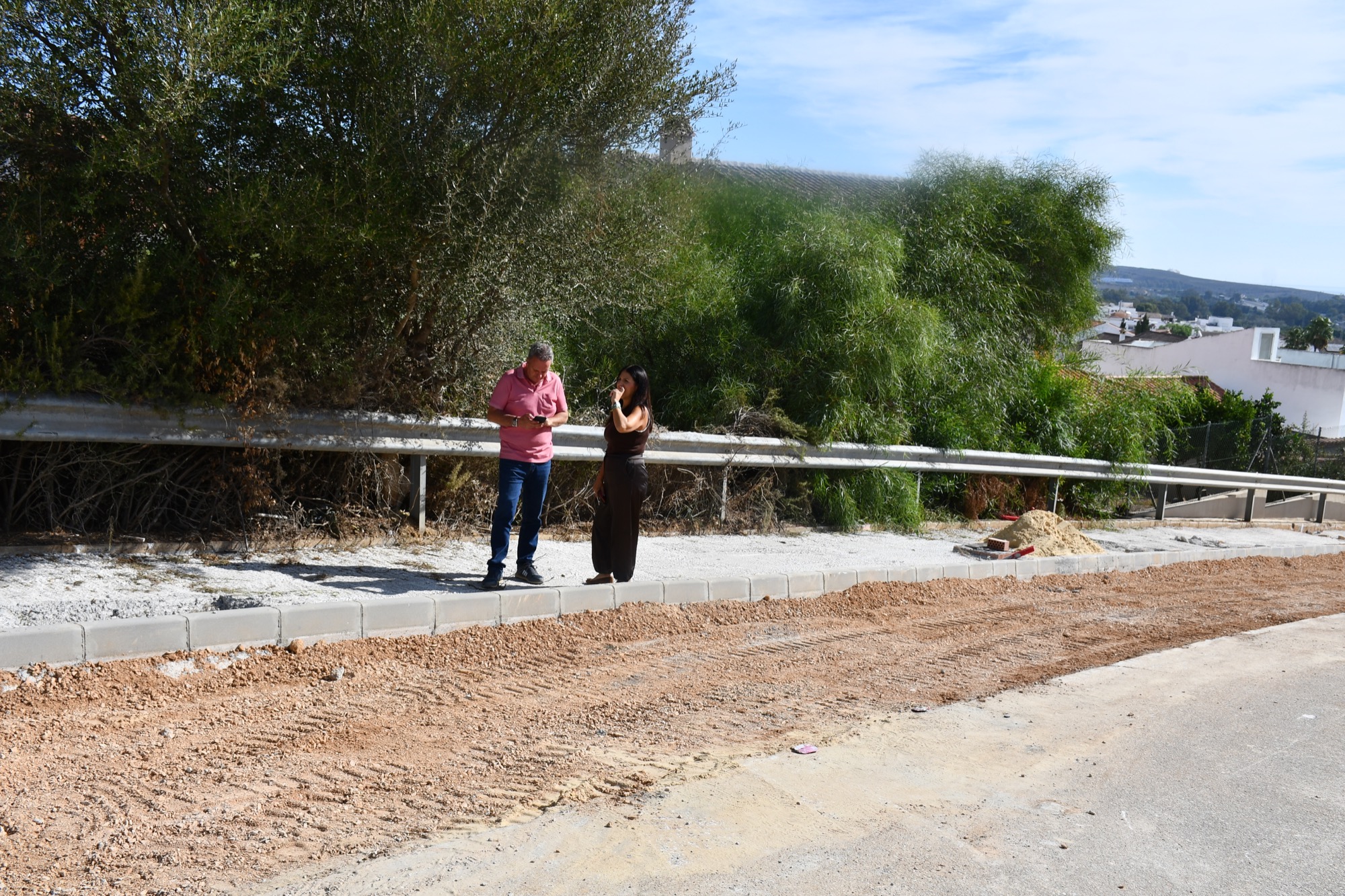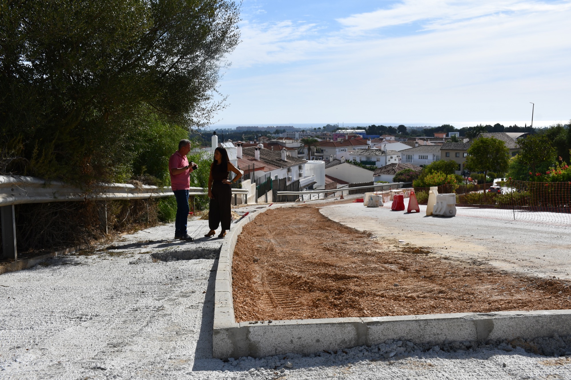 La teniente de alcalde de Obras y Servicios, Belén Jiménez, junto a un técnico municipal, ha realizado una visita de inspección a una de las actuaciones que se vienen haciendo desde el departamento de Infraestructuras y Obras, de la mencionada delegación. Se trata de una de las vías centrales de Pueblo Nuevo de Guadiaro, la Avenida El Conchudo, que además cuenta con mucho tráfico y no tenía acera.