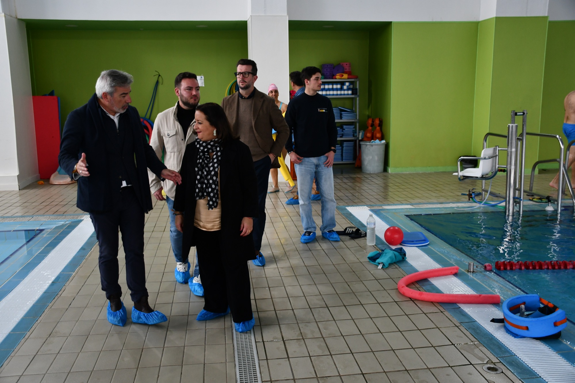 La alcaldesa accidental, María del Mar Collado, y el teniente de alcalde delegado de Deportes, Fernando Vega, han visitado este miércoles la Piscina Municipal Cubierta. Después de los problemas vividos en 2024, cuando hubo que rescatar la concesión a la anterior empresa adjudicataria de la gestión del complejo deportivo, hace un año se adjudicó el servicio a San Roque Fit, que en estos meses ha realizado importantes inversiones y ha conseguido incrementar notablemente el número de clientes.