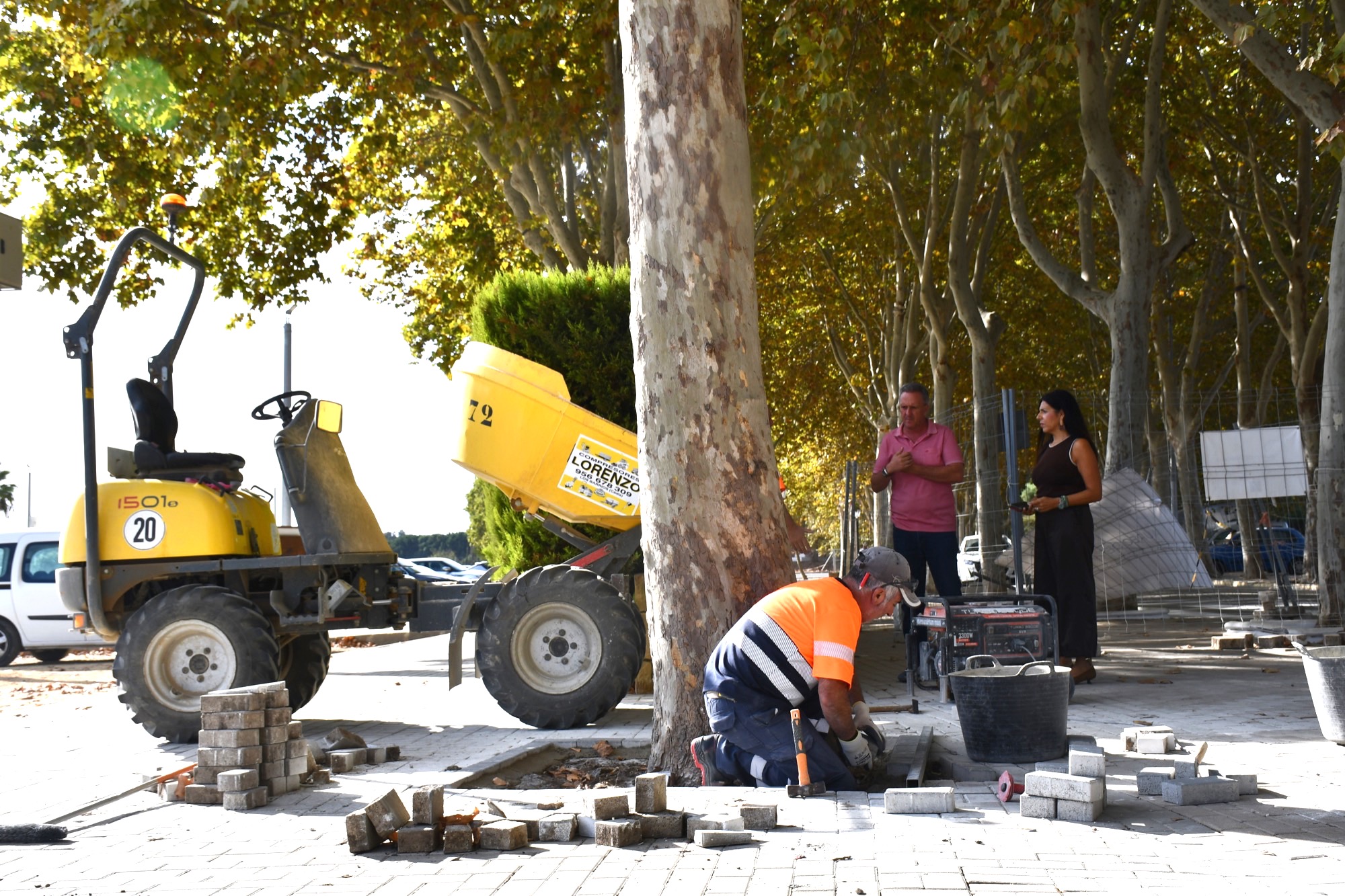 “Los trabajos están consistiendo en adecuar los alcorques de los árboles para dotarlos de la misma estética que los del parque feria adyacente, además de aumentarlos en tamaño para evitar el levantamiento de adoquines provocado por las raíces de los propios árboles” ha indicado Jiménez.