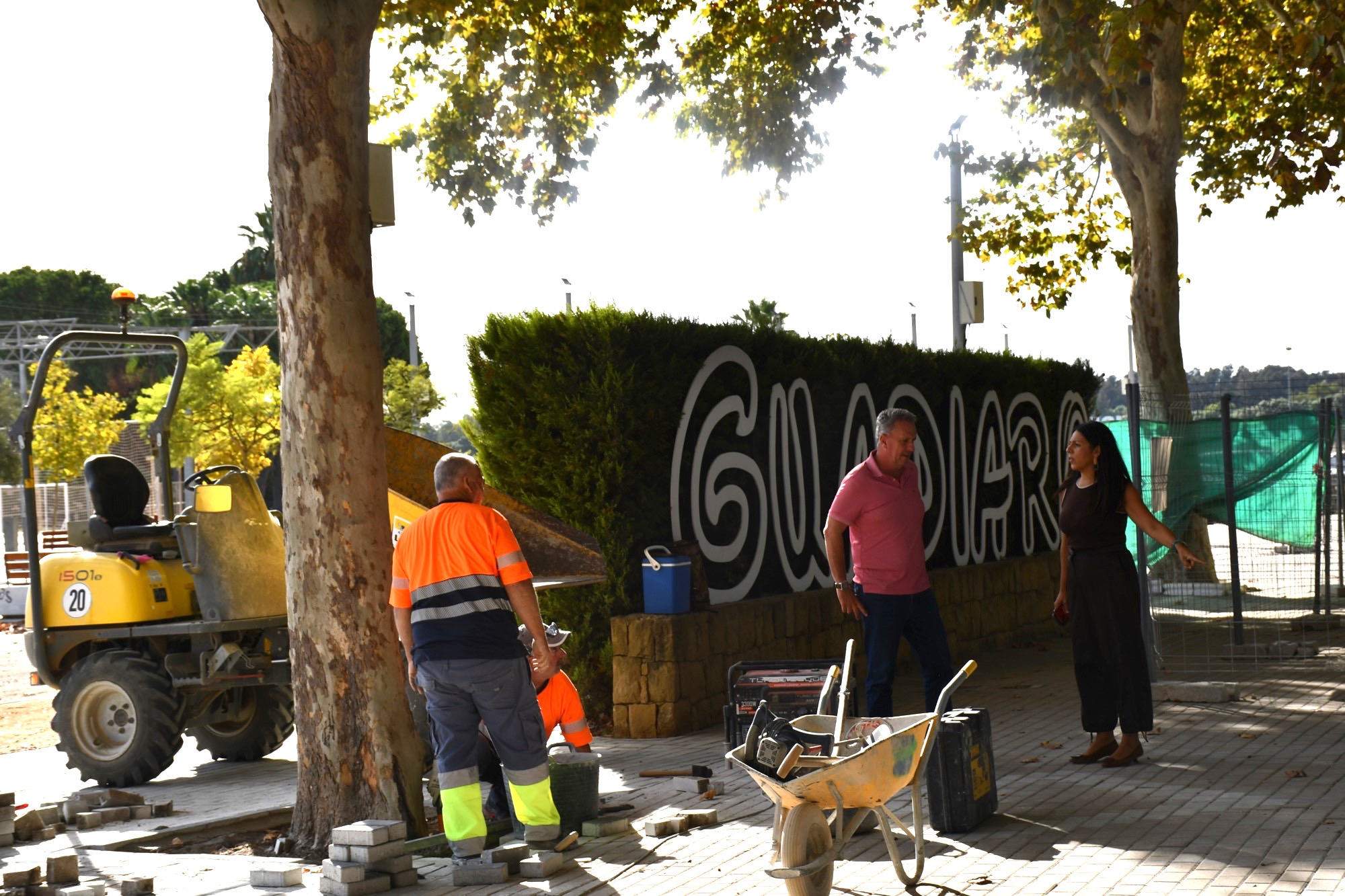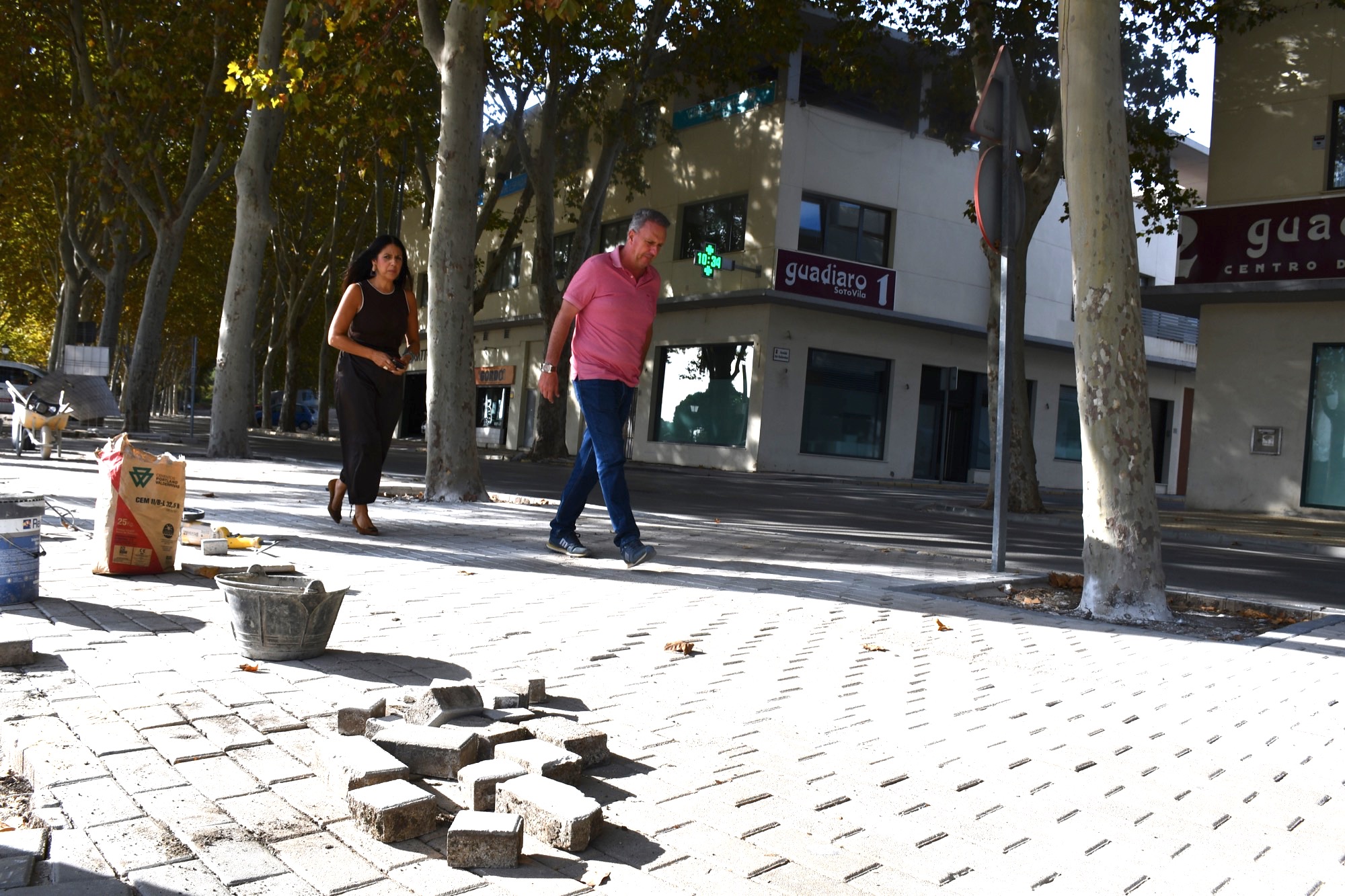 La teniente alcalde de Obras y Servicios, Belén Jiménez, ha visitado la Avenida Ciro Gil en Guadiaro, zona en la que se están llevando a cabo diversas actuaciones, entre ellas, la ampliación de alcorques, la construcción de bancos nuevos y la eliminación de los adoquines levantados para evitar el riesgo de caídas.