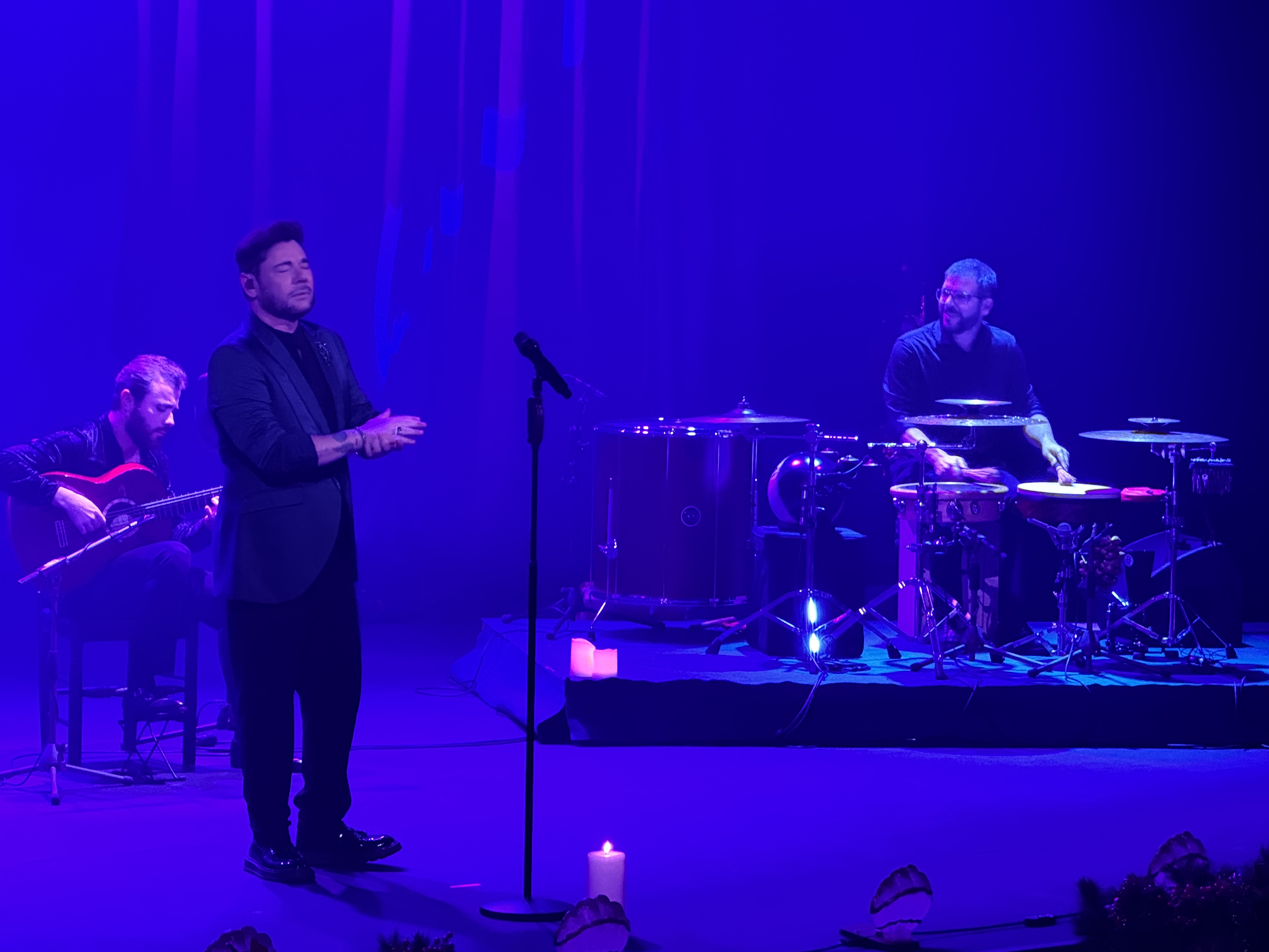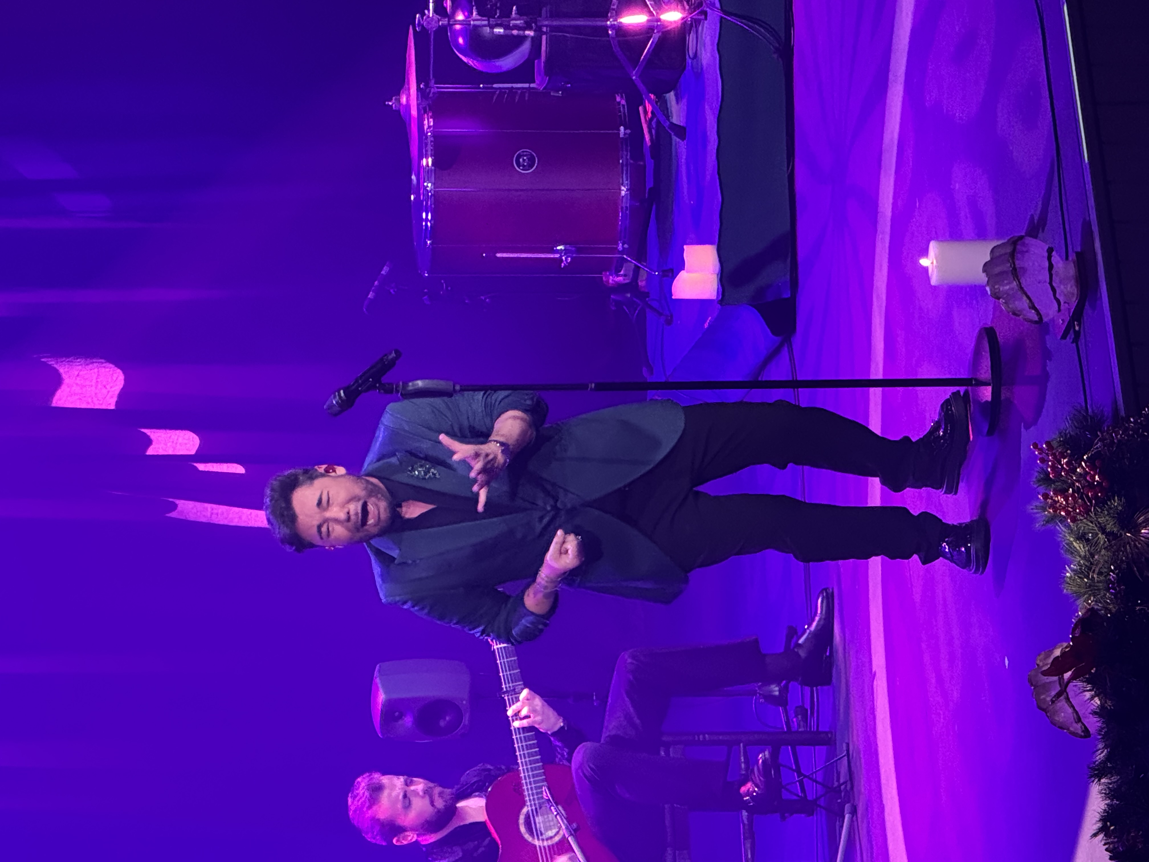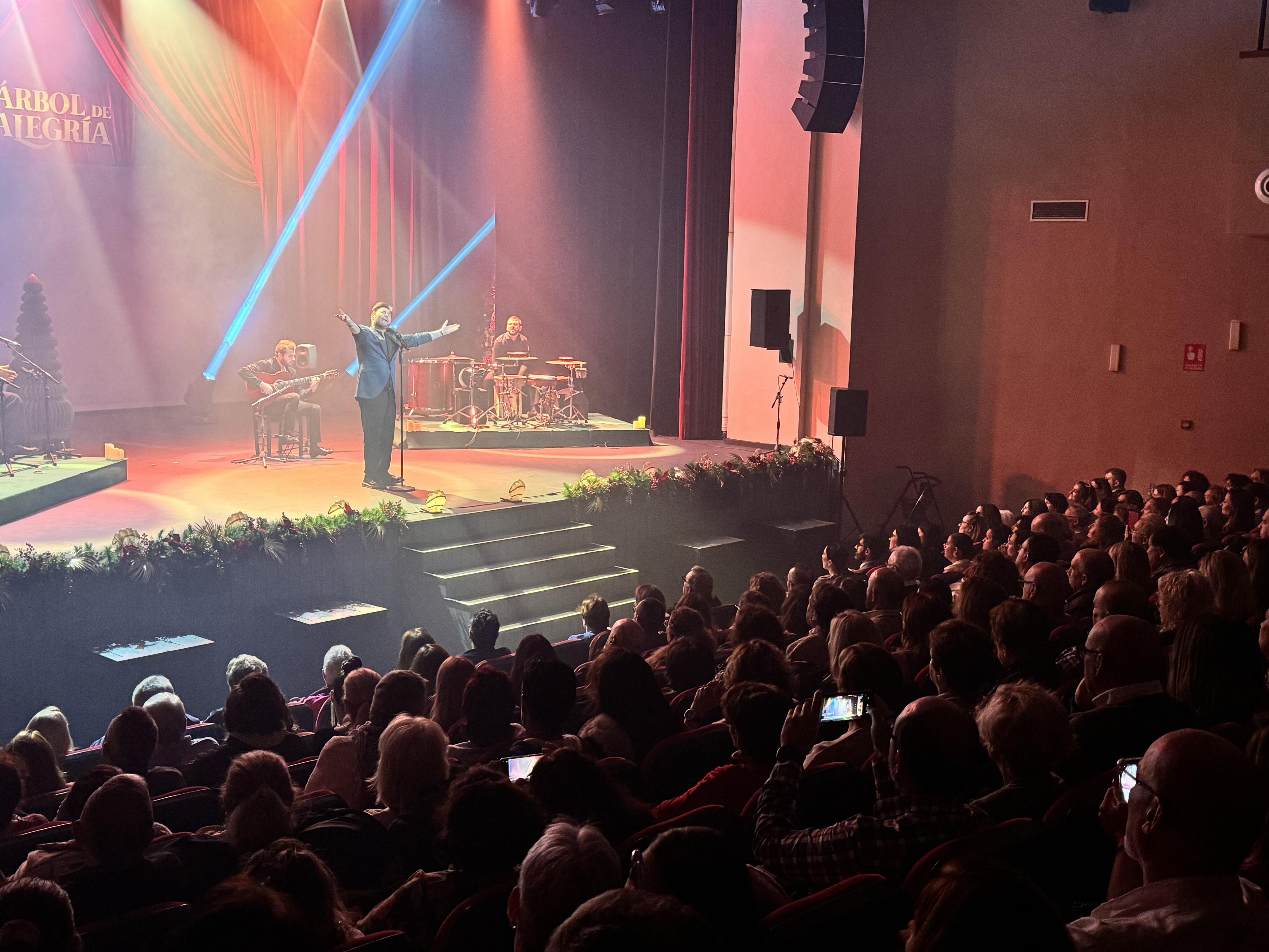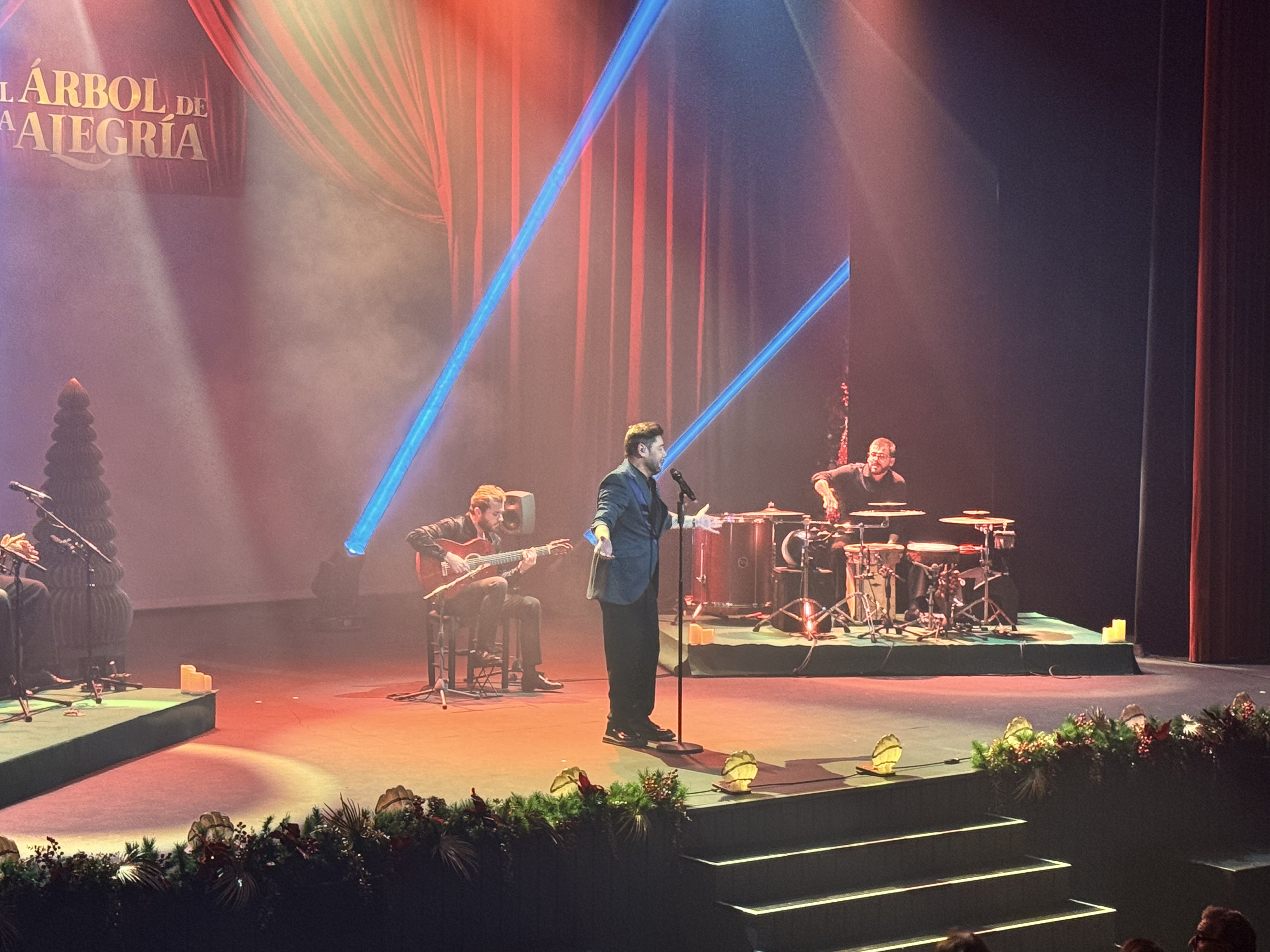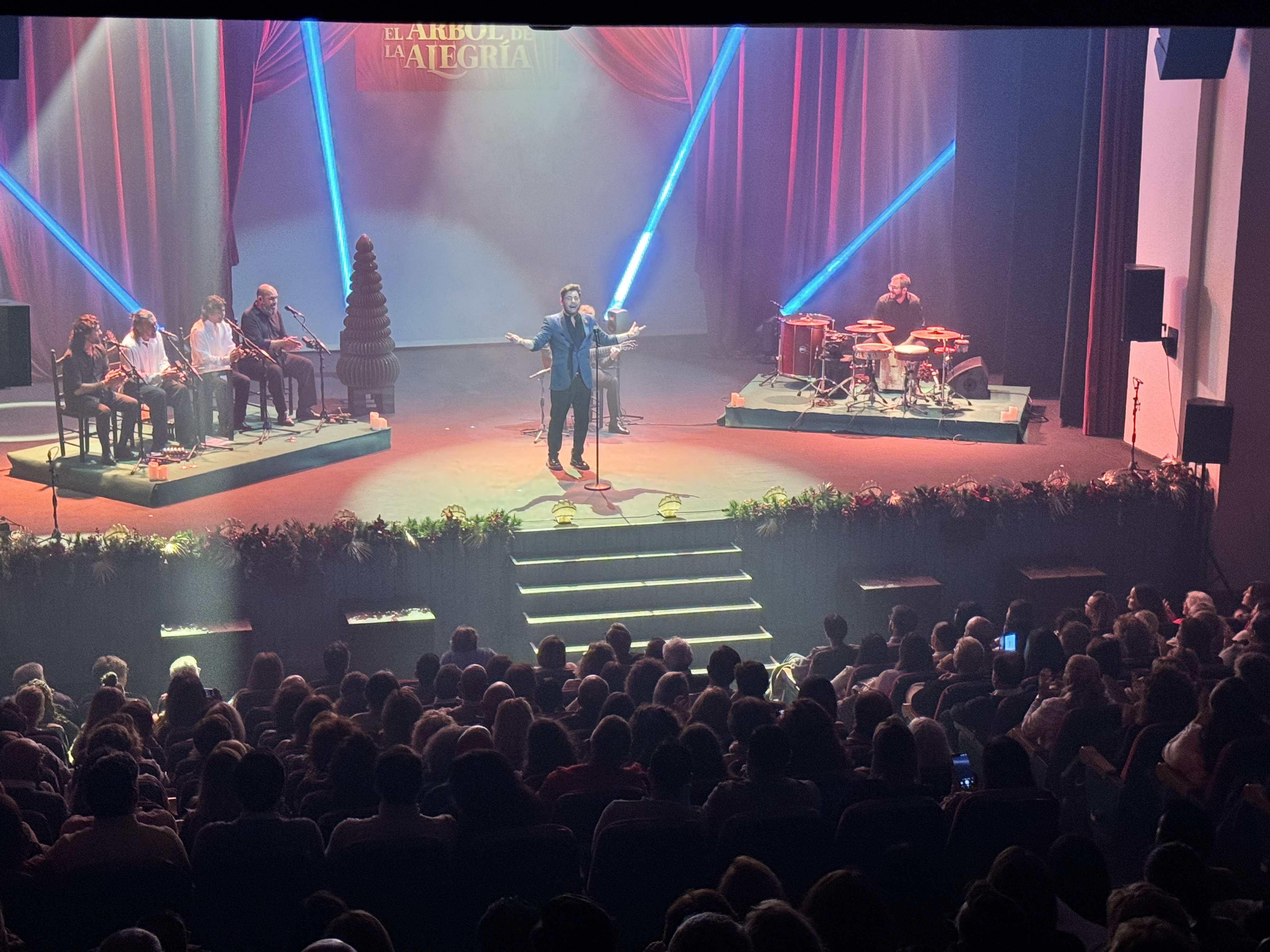 Durante el recital, Poveda interpretó los temas que conforman “El árbol de la alegría”, un disco inspirado en su infancia en Badalona y que va más allá de los tradicionales villancicos, convirtiéndose en un homenaje emocional a la familia, los recuerdos y el espíritu navideño. Con arreglos y producción de Jesús Guerrero, las canciones llevaron al público desde la nostalgia más íntima hasta la alegría compartida.