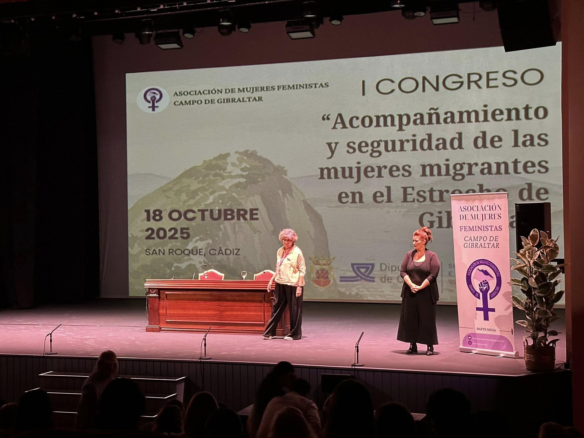 Durante toda la jornada de este sábado San Roque ha vivido el primer Congreso de la Asociación de Mujeres Feministas Campo de Gibraltar. Bajo el título “Acompañamiento y seguridad de las mujeres migrantes en el Estrecho de Gibraltar”, el encuentro ha aglutinado a un centenar de personas interesadas en las dificultades a las que deben enfrentarse las mujeres migrantes que llegan a la comarca, desde la discriminación por raza y género hasta la trata y la prostitución.