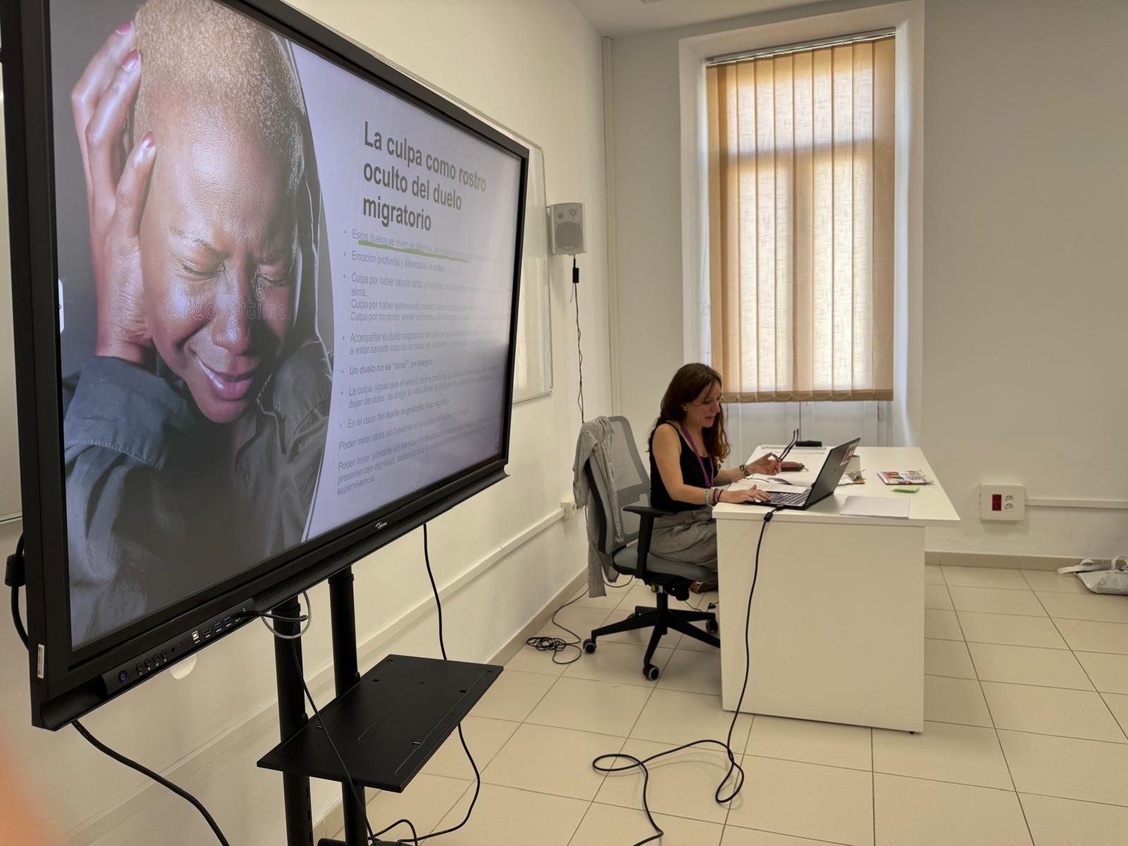 Posteriormente, Ofelia de Pablo ofreció una ponencia cuyas protagonistas fueron las “Mujeres Frontera”. Esta documentalista y periodista de investigación, especializada en derechos humanos con enfoque de género, explicó cómo el paso de la frontera del Estrecho no era el fin de las historias de las mujeres migrantes, sino que los maltratos personales y laborales continúan en el sur de España.