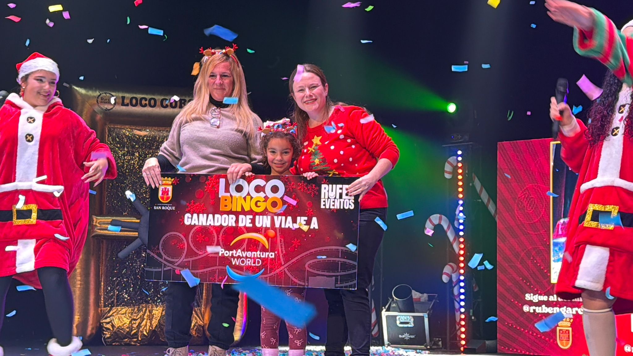 El Teatro Juan Luis Galiardo se llenó en la tarde del viernes 5 de diciembre en el Especial de Navidad de Loco Bingo, organizado por la Delegación de Participación Ciudadana. Se repartieron numerosos premios, entre ellos un viaje a Port Aventura.