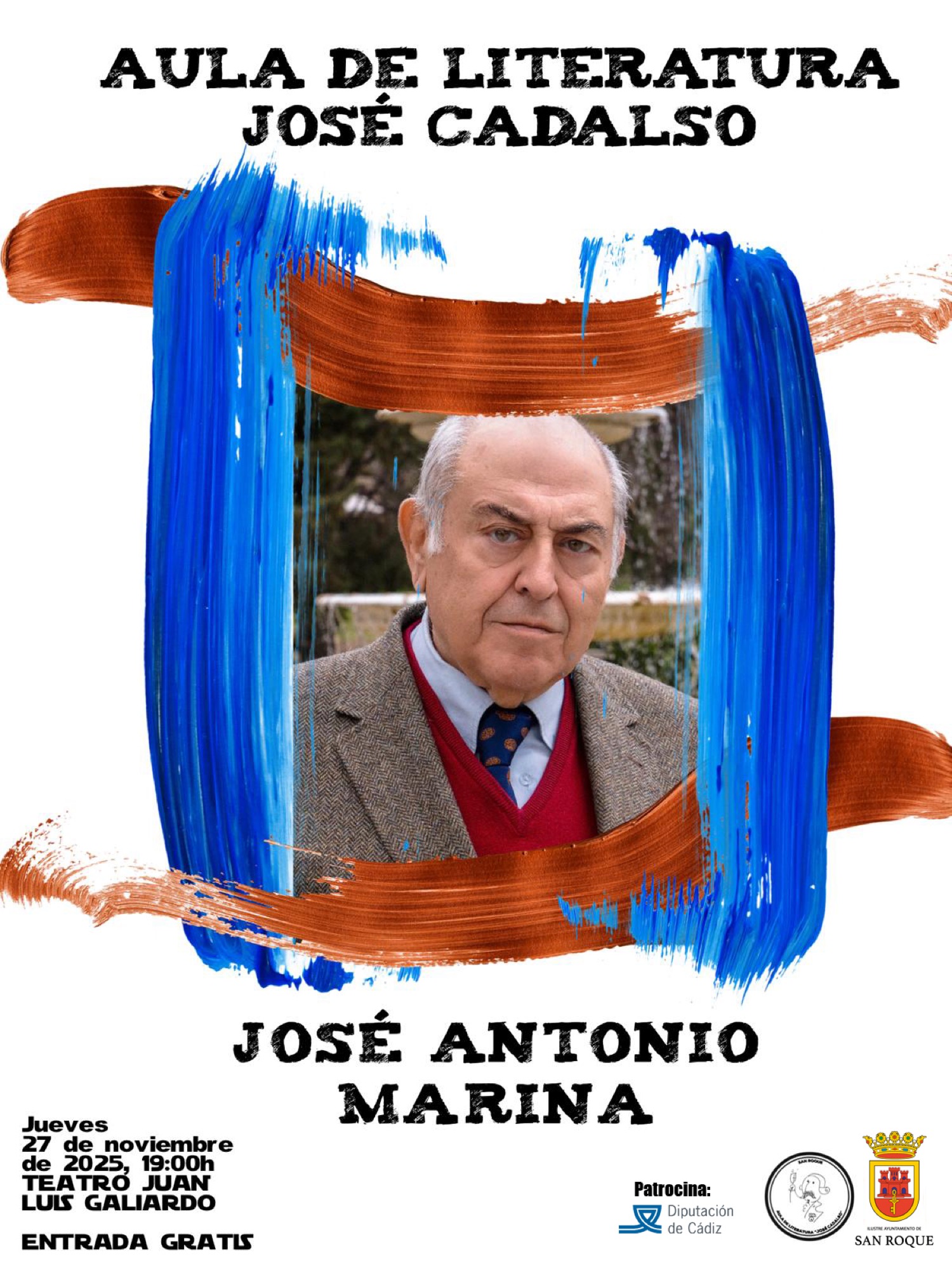 La Delegación de Cultura del Ayuntamiento de San Roque, que dirige la teniente de alcalde Ana Ruiz, organiza la edición del mes de noviembre del Aula de Literatura “José Cadalso”, que tendrá como protagonista a José Antonio Marina. La cita será el próximo jueves, 27 de noviembre, en el Teatro Juan Luis Galiardo a partir de las 19.00 horas, y como siempre la entrada será libre hasta completar aforo. Este acto está patrocinado por la Diputación de Cádiz.