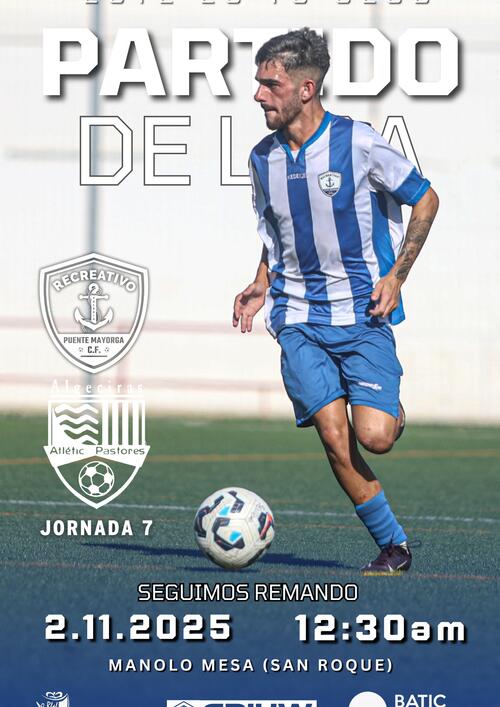 El Recreativo Puente Mayorga Club de Fútbol, que ocupa el segundo puesto del grupo primero de Tercera Andaluza Cádiz, tiene el objetivo de seguir escalando en la clasificación en su envite contra el Club Deportivo Atlético Pastores de Algeciras. El partido será este domingo a las 12:30 horas en el Manolo Mesa y lo dirigirá el trencilla Jiménez Sánchez.