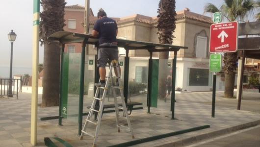El Consorcio comarcal de Transportes está procediendo a la sustitución de las marquesinas de las paradas de autobús en la barriada de Torreguadiaro, tras la petición formulada por el ayuntamiento.