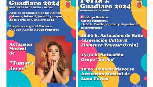 Desde mañana miércoles 26 de junio, y hasta próximo domingo 30, se va a celebrar en el Recinto Ferial la Feria de Guadiaro. El programa de actos se inicia a las 20 horas con la coronación y la imposición de bandas a la reina infantil, Sheila...