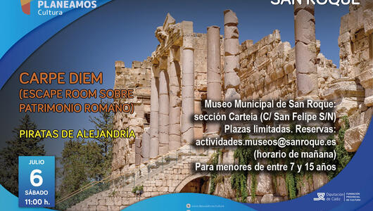 La compañía Piratas de Alejandría pondrá en escena el próximo sábado 6 de julio Carpe Diem, un “escape room” sobre patrimonio romano. La cita será a partir de las 11:00 horas en el Museo Municipal de San Roque, sección Carteia, y está dirigida a...