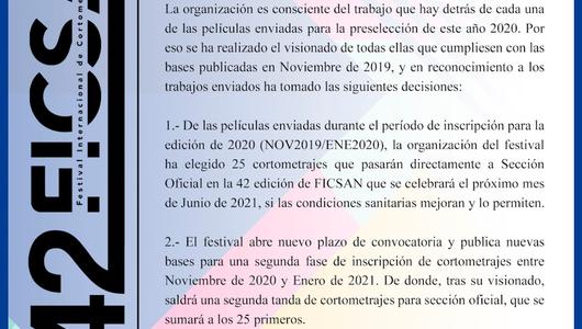 La Delegación de Cultura del Ayuntamiento de San Roque ha decidido posponer la realización de la 42 edición del Festival Internacional de Cortometrajes de San Roque (FICSAN), que se celebrará el próximo mes de junio de 2021.