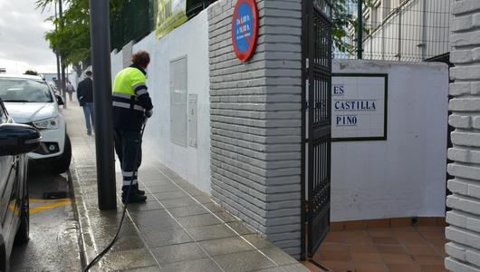 Los trabajadores de Limpieza Viaria han llevado a cabo hoy, martes, las distintas actuaciones de desinfección que se realizan en los espacios más concurridos del término municipal desde el inicio de la pandemia, en marzo pasado. La barriada de...