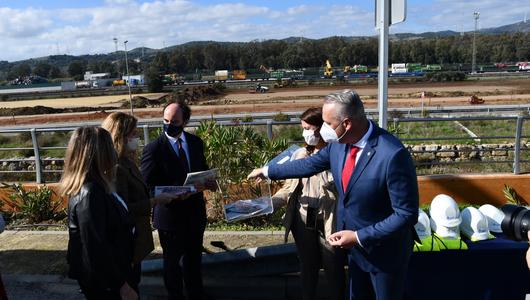 La consejera de Fomento, Infraestructuras y Ordenación del Territorio, Marifrán Carazo, junto al alcalde de San Roque, Juan Carlos Ruiz, y el director del puerto de Algeciras, Gerardo Landaluce han colocado hoy la primera piedra de las obras de...