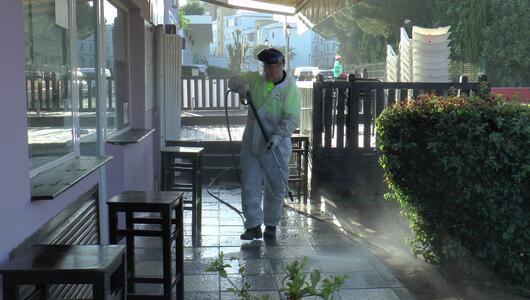 Trabajadores adscritos a Limpieza Viaria prosiguen con las labores incluidas dentro del plan especial de limpieza y desinfección del Ayuntamiento durante el estado de alarma por Covid-19. Los trabajos se realizan en todo el municipio, todos los...