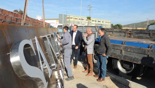 La entrada al municipio a través del Polígono de Campamento lucirá unos letreros metálicos de bienvenida que se están instalando hoy, martes. El alcalde, Juan Carlos Ruiz Boix, se ha desplazado a la zona para inspeccionar estas labores de...