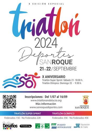 La Delegación de Deportes del Ayuntamiento quiere celebrar por todo lo alto el décimo aniversario del Triatlón Ciudad de San Roque, y este año se celebrarán dos pruebas: el Triatlón Super Sprint, el sábado 21 de septiembre; y el Triatlón Olímpico, el domingo 22. Las inscripciones pueden realizarse ya en la web Triatlonandalucia.org.