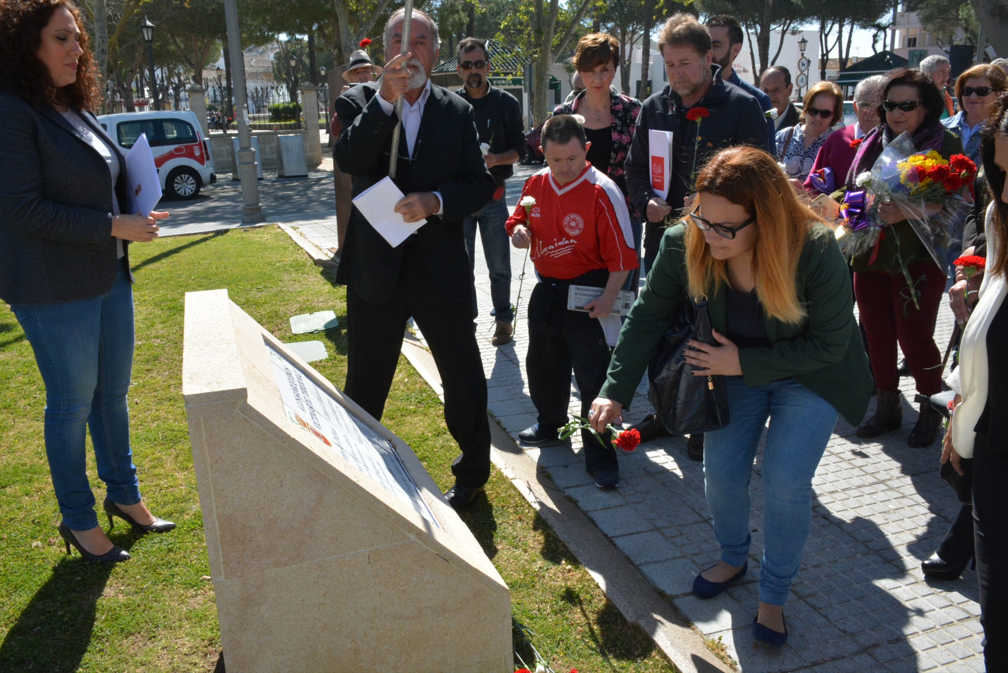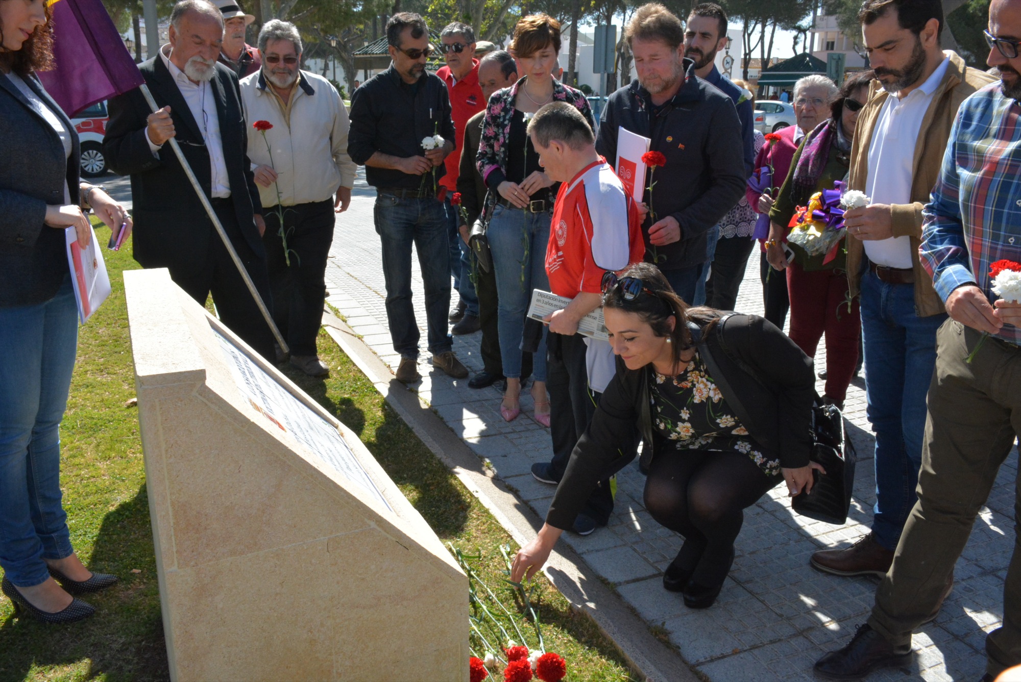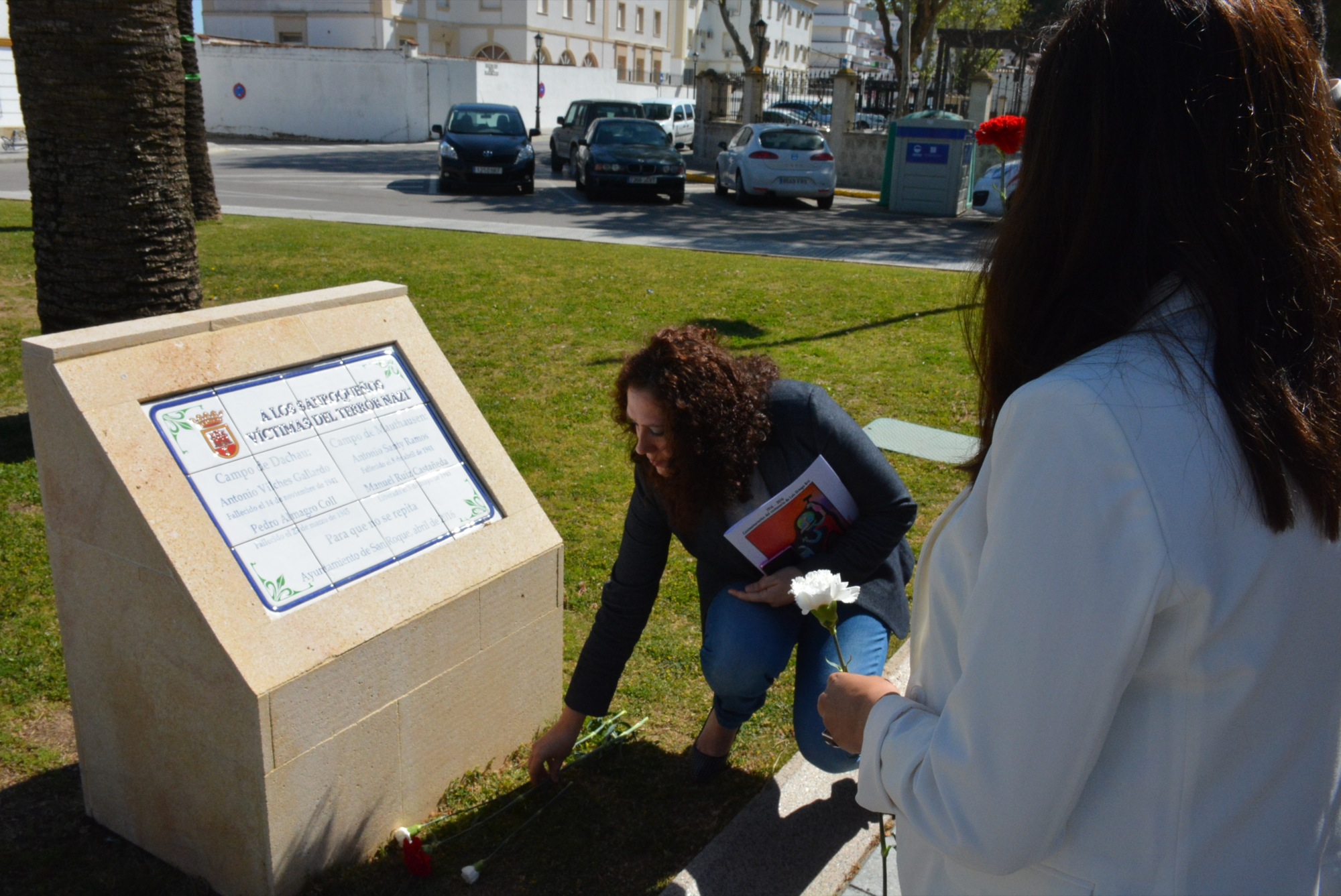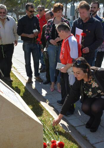 En cuanto a la ofrenda floral, se realizó en el monolito situado junto a la escultura del Tercer Centenario de la Fundación de San Roque y que recuerda a los cuatro sanroqueños internados en los campos de concentración de Dachau y Mauthausen durante la Segunda Guerra Mundial: Antonio Vilches Gallardo, Pedro Almagro Coll, Antonio Santy Ramos y Manuel Ruiz Castañeda. Los tres primeros fallecieron en esos años de terror, y Manuel Ruiz consiguió aguantar con vida hasta su liberación de Mauthausen en 1945.