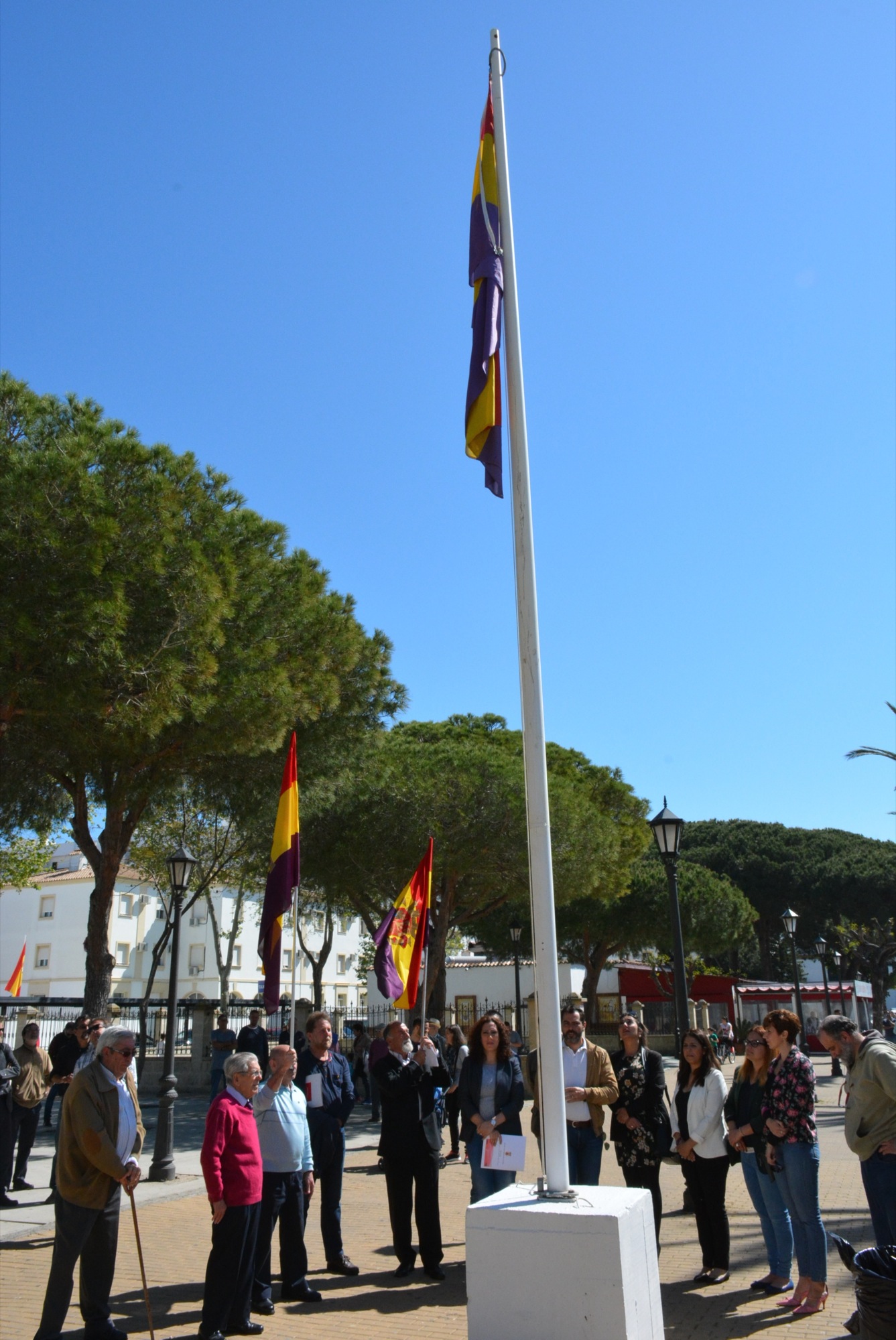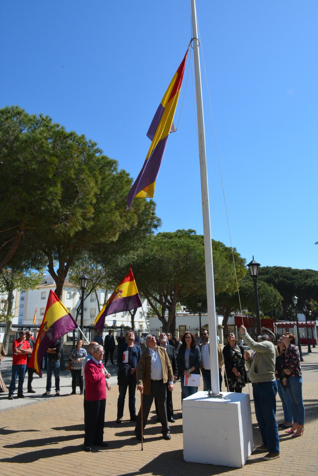 A continuación tuvo lugar la izada de la enseña republicana en un mástil situado en plena Alameda Alfonso XI mientras sonaba el Himno de Riego. Finalmente se sucedieron una serie de intervenciones a cargo de Willy García, del Ateneo Republicano del Campo de Gibraltar; Andrés Rebolledo, presidente del Foro por la Memoria del Campo de Gibraltar; Dolores Marchena, teniente de alcalde y presidenta de la Comisión Municipal de Memoria Histórica; y Francisco Galdeano, histórico republicano y socialista sanroqueño.