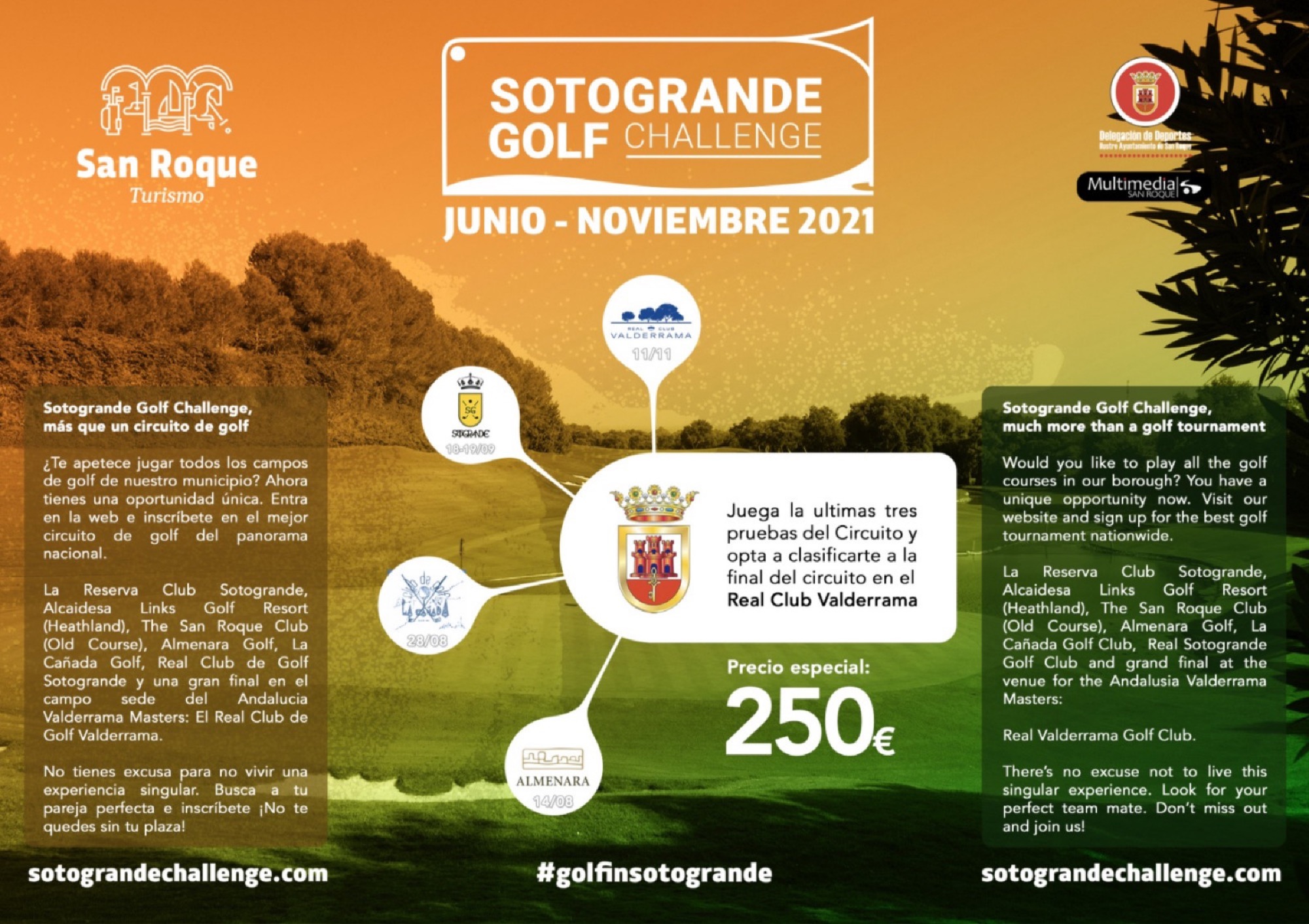 Aún estás a tiempo de formalizar tus inscripciones a las diferentes pruebas que aún quedan por disputarse en La Cañada Golf o el Real Club Sotogrande. Entra en la web www.sotograndechallenge.com y apúntate a un circuito único. Que no te lo cuenten, disfrútalo.