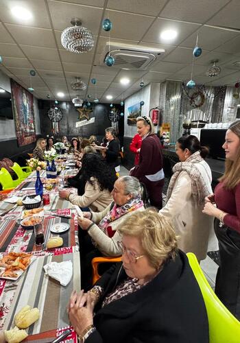 Las mujeres de la asociación Las Flores 2.0 han celebrado su tradicional almuerzo navideño. El teniente alcalde de la zona, Juan Serván, y la concejal de Igualdad, Eva Gil, junto a otros ediles de la Corporación Municipal han participado en esta comida.