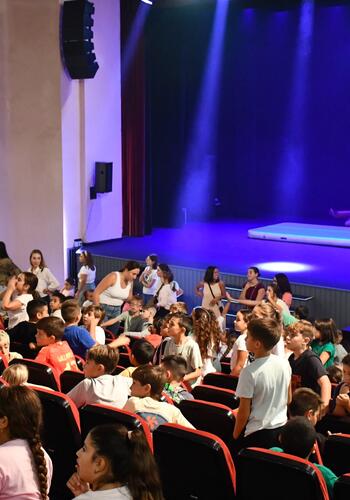 Más de un centenar de alumnos de Primaria de los colegios Santa Rita y Sagrado Corazón, de la zona de la Bahía, visitaron este martes el Teatro Juan Luis Galiardo para disfrutar del circo y el teatro, gracias al Festival Sanrotín. Esta décima edición se dirige íntegramente al alumnado del municipio.