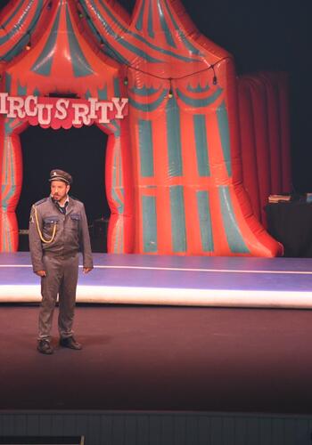 El espectáculo corrió a cargo de la compañía de Ácana, que representó “Circurity”, una propuesta cuidada y plagada de detalles, en la que el humor y las disciplinas circenses maridan en una comunión indisoluble a través de las aventuras de Giovanni, el atolondrado guardia de seguridad del Circus Rity.