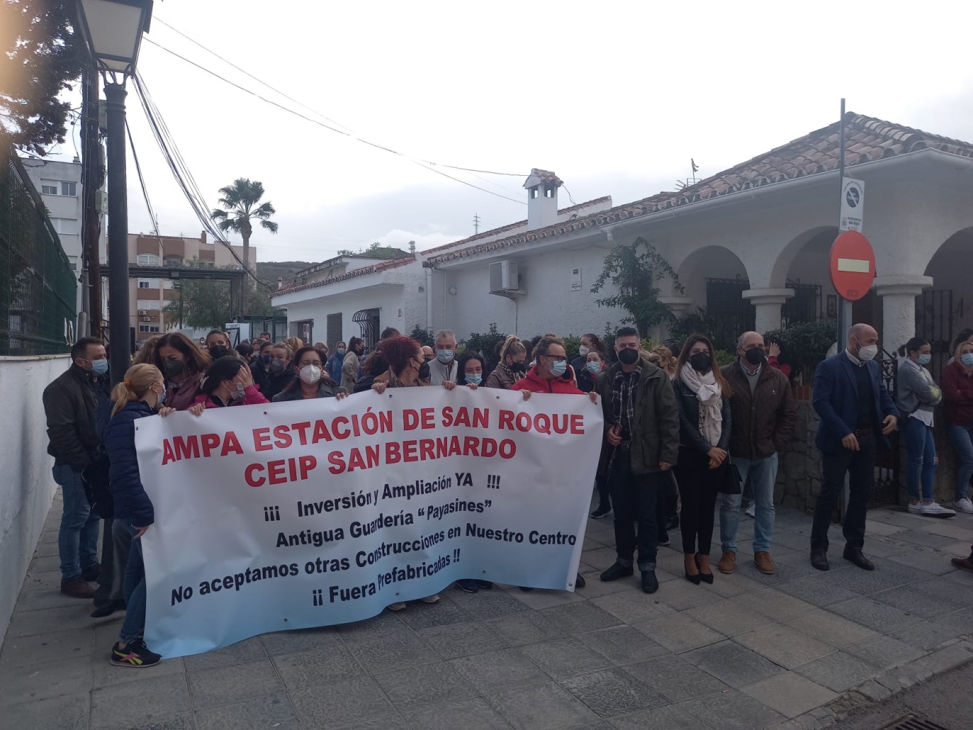 Madres y padres de alumnos del CEIP San Bernardo, de la Estación de San Roque, se han concentrado en la mañana de hoy, jueves, para reclamar a la Junta de Andalucía que invierta en adaptar la antigua guardería como nuevo aulario para el colegio. Autoridades municipales han participado en este protesta para secundar las reivindicaciones de la AMPA del centro.