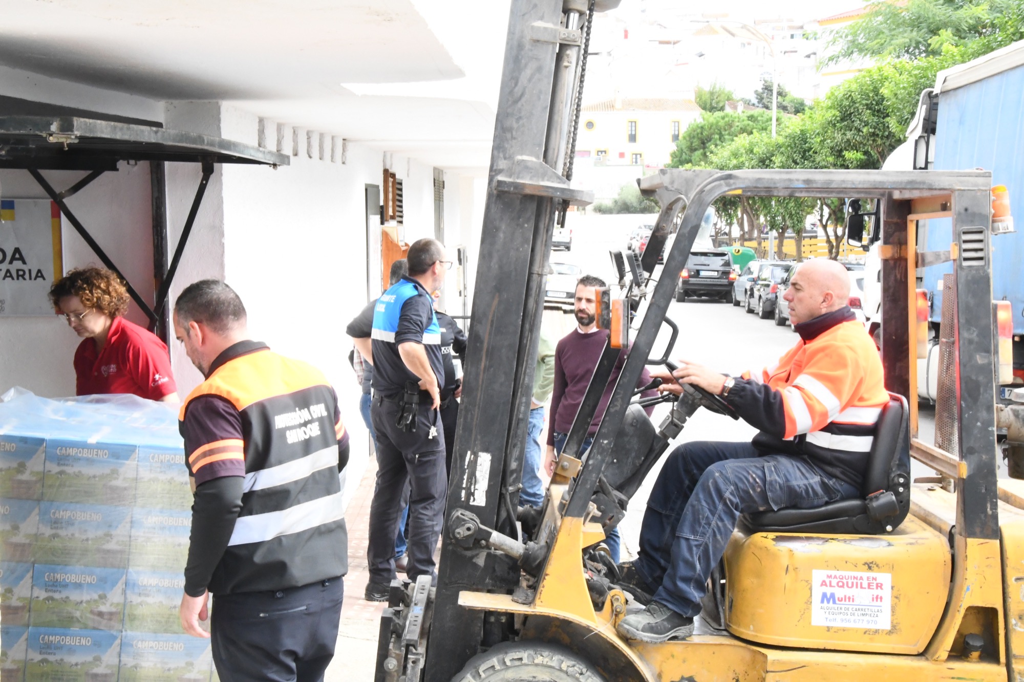 Agradeció la colaboración de la empresa de Transportes Micetrans, de la mano de Diego Piñel, así como a Protección Civil, Policía Local y Emadesa, y a otros voluntarios, para el transporte y descarga de los alimentos.