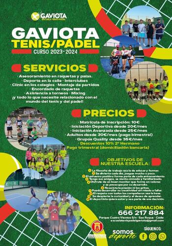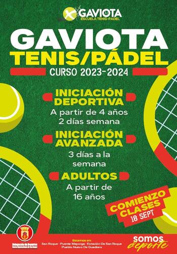 En San Roque: en las instalaciones del Gaviota (clases de tenis) y en las instalaciones del Manolo Mesa (clases de pádel).