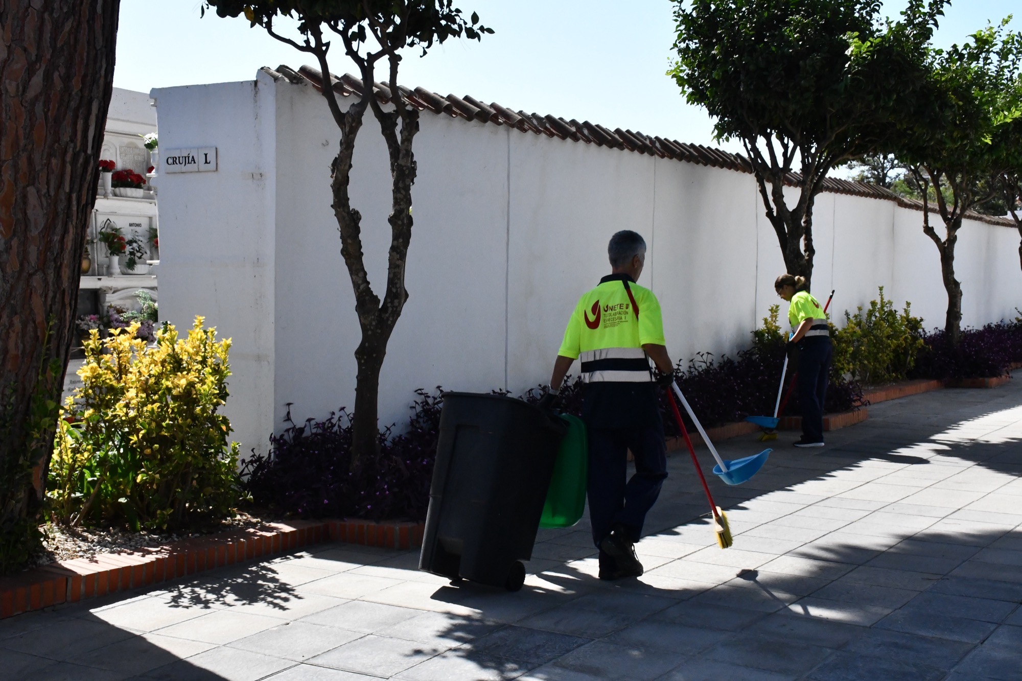 Estos trabajos de preparación previa a la festividad Todos los Santos comenzaron en el cementerio de San Miguel, en San Roque Casco, y continuarán en el resto de cementerios del municipio como son el de la Estación de San Roque, los dos de la zona de la Bahía y el de Guadiaro.