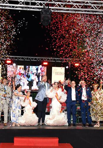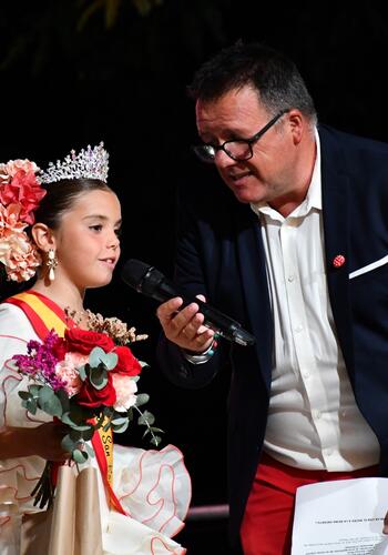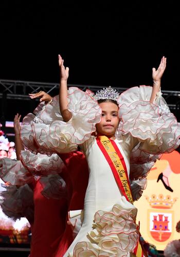 Tras ello, llegó el turno de la coronación. El traspaso de corona e imposición de banda a la reina infantil, Nazaret Martín Porrúa, fue a cargo de la edil de Fiestas, María del Mar Collado, mientras que el alcalde hizo lo propio al traspasar la corona e imponer la banda a la reina juvenil, Noemi García Rodríguez. Ambas reinas impusieron las bandas a sus respectivas cortes. La infantil está compuesta por las damitas Carmela Quijada Ramírez, Sara Villena Rojas, Abril Holgado Martínez, Sara Ruiz Cuadro, Julia Arias Medina y Alejandra Puertas García. La corte juvenil, integrada por las damas María Hidalgo Vera, Miriam Moncayo Barriga, Sarai Lahrirach Devin, Lara López Delgado y Daniela Sánchez García.