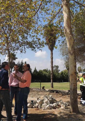 El alcalde de San Roque, Juan Carlos Ruiz Boix, ha realizado una visita a las obras del parque canino que se están ejecutando dentro del recinto del Parque El Toril, en concreto en el espacio antes usado como parque infantil.