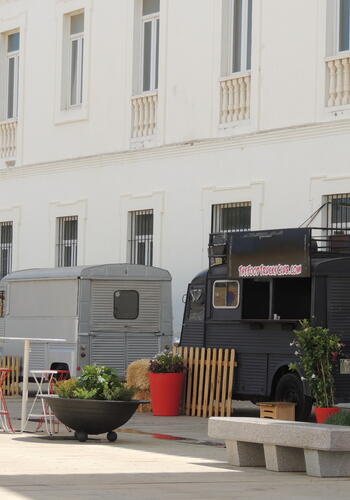 El Ayuntamiento de San Roque ha traido a la Plaza de las Constituciones en el transcurso de la proyección de El Niño, hoy viernes 4 de septiembre, dos camiones de comida ambulante, conocidos como "foodtruck".