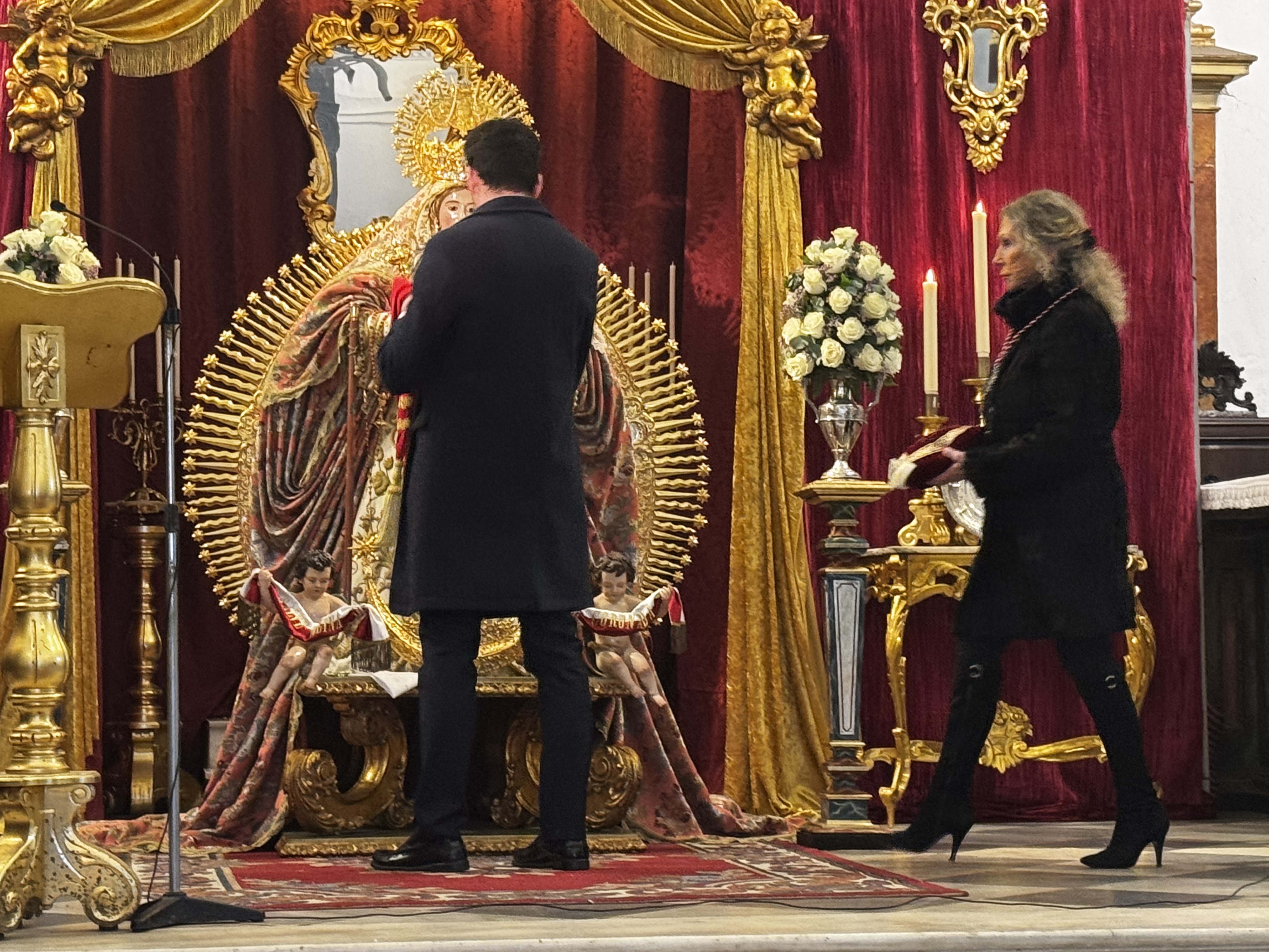 Después, el hermano mayor de la Venerable Hermandad de Gloria de Nuestra Excelsa Patrona Santa Maria la Coronada, Francisco Becerra, le dio un obsequio y le impuso la medalla de la Hermandad, dándose así por concluido el acto.
