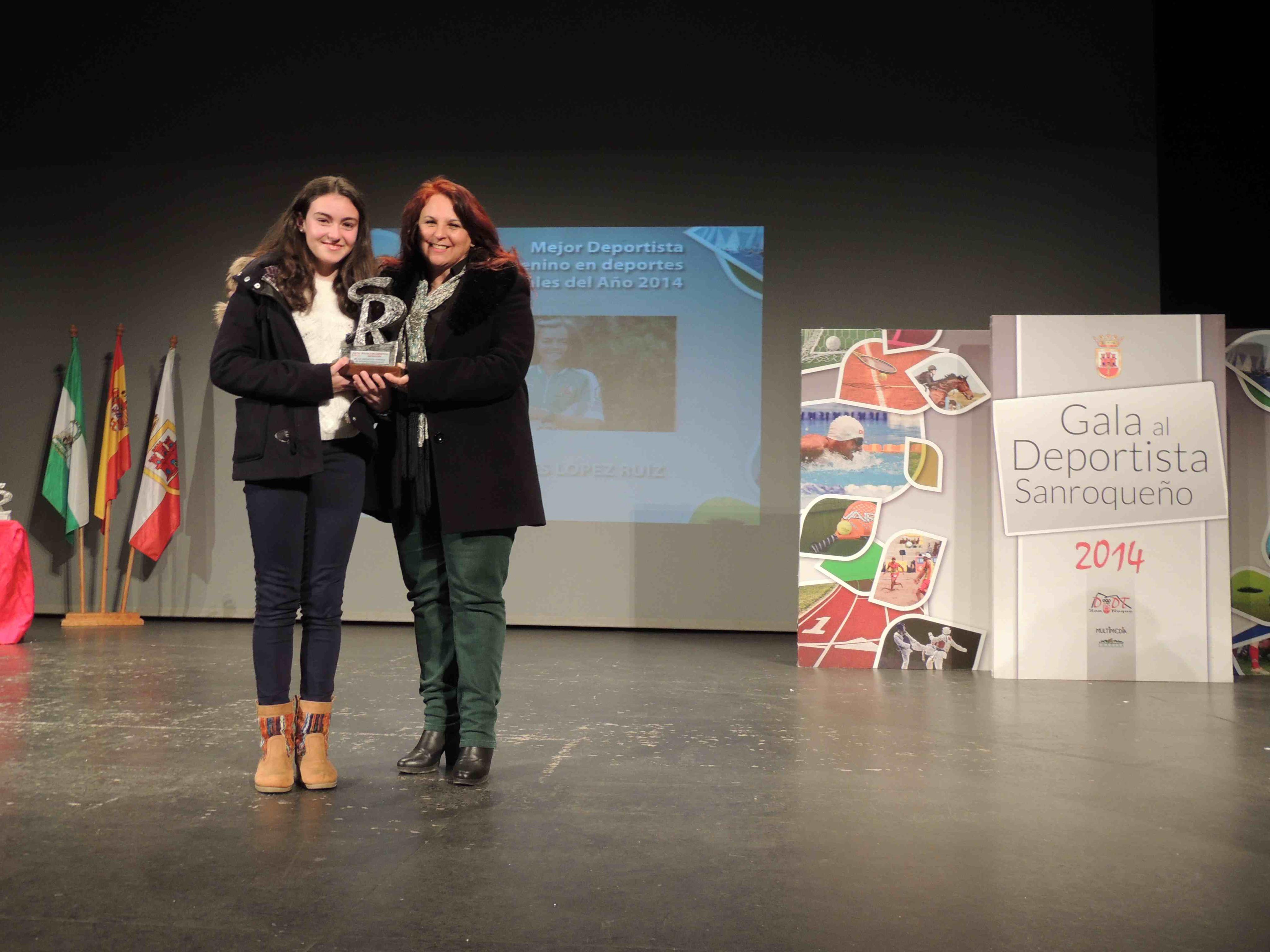 El galardón a la Mejor Deportista Femenina en Deportes Individuales fue para Ángeles López Ruiz (recogió una amiga y compañera en el O-San Roque, por encontrarse en competición). La deportista sanroqueña, de 14 años de edad, durante el año 2014,se ha proclamado Campeona de España Escolar con la Selección Andaluza, 1ª posición en el Ranking Andaluz de su categoría, y 4ª clasificada en el Ranking Nacional en una categoría superior a la de su edad. Participa en todas las concentraciones de las selecciones Andaluza y Española, estando incluida en el Plan Nacional de Tecnificación Deportiva del C.S.D. Todos estos resultados conllevaron que la Federación Española del Deporte de Orientación la seleccione para representar a España en el Campeonato del Mundo en Edad Escolar que se celebrará en Turquía.