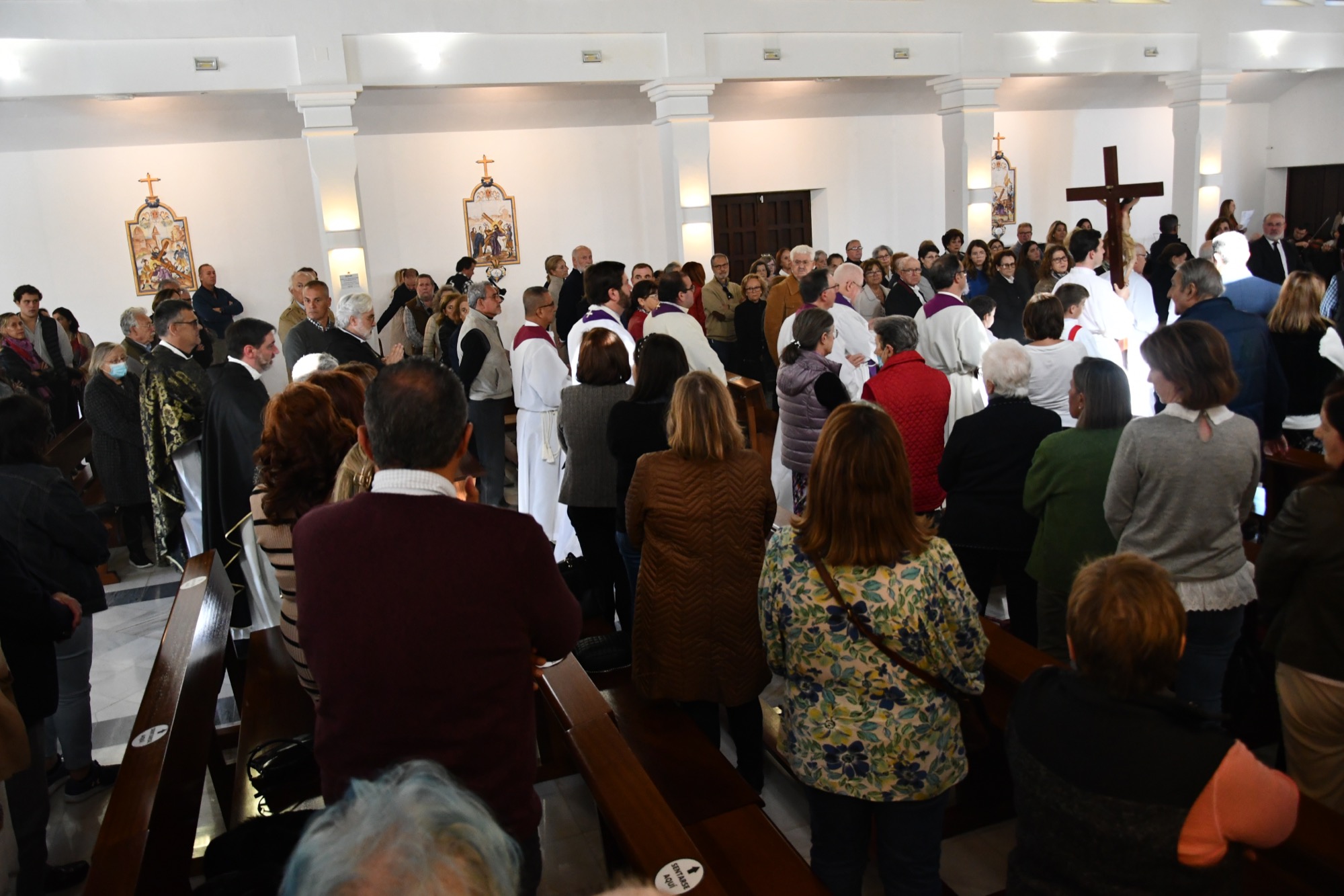 El Santuario de la Divina Misericordia de Pueblo Nuevo ha acogido hoy, sábado, la misa funeral frente a las cenizas del padre Agustín Borrell, quien fue párroco durante varios años en el Valle del Guadiaro. Numerosos fieles han asistido a la celebración religiosa, entre los que se contaban varios miembros de la Corporación.