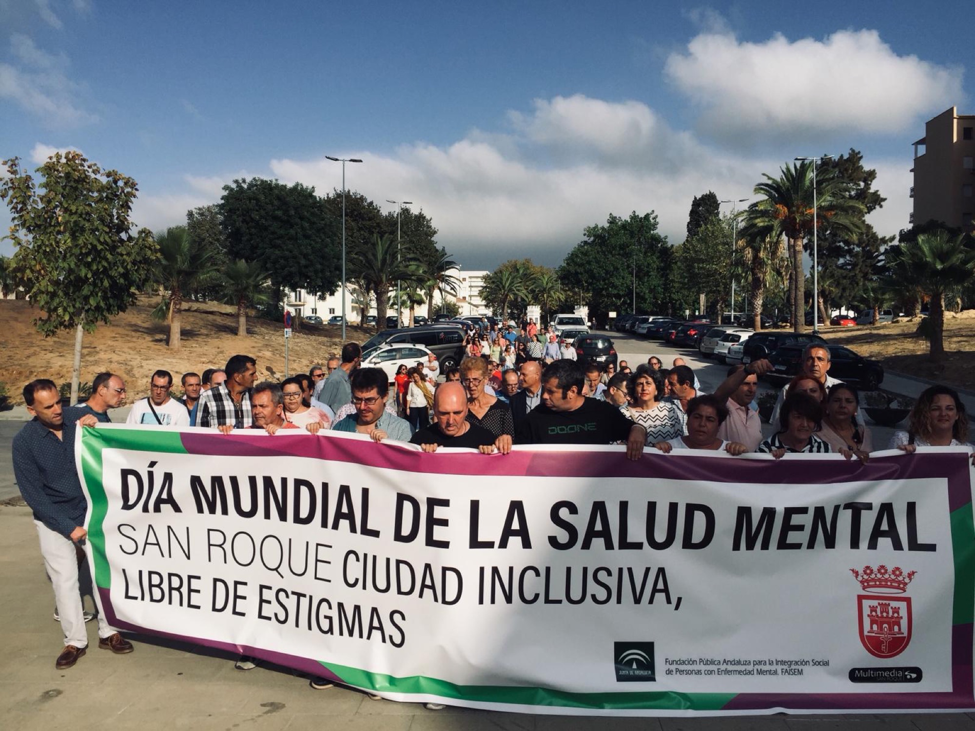 El Ayuntamiento de San Roque junto con la Fundación Pública Andaluza para la Integración Social de Personas con Enfermedad Mental “FAISEM”, organizaron el I Día Mundial de la Salud Mental. Las actividades se iniciaron a las 17.00 horas con una marcha ciudadana, donde estuvieron presentes los tenientes de alcalde de Asuntos Sociales e Igualdad y de Salud, Mónica Córdoba y Juan Serván, respectivamente. El alcalde también participó, inaugurando la jornada en el salón de actos del edificio Diego Salinas.