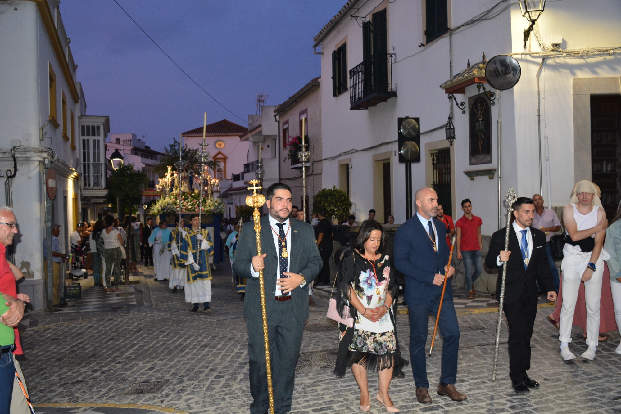 En la procesión se contó con el alcalde accidental, Juan Manuel Ordóñez, la concejal de Fiestas y Tradiciones, María del Mar Collado, y el presidente de la Junta Local de Hermandades y Cofradías, Juan Angulo.