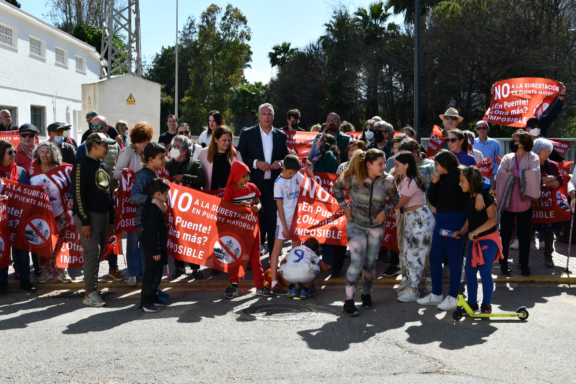 La concentración se ha celebrado en la calle Martinete, en la muralla del arroyo Cachón y justo en frente de donde se plantea la subestación, una zona donde hay varios bloques de viviendas y a apenas 50 metros del Colegio Sagrado Corazón. El alcalde, Juan Carlos Ruiz Boix, se contaba entre los asistentes, así como miembros de los distintos los grupos de la Corporación, y también hubo representación de colectivos ciudadanos, principalmente de Puente Mayorga, Campamento y Guadarranque, las tres barriadas que conforman el Área de la Bahía.