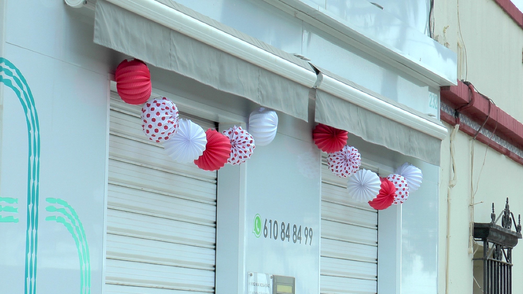 Los farolillos se han repartido tanto entre colectivos ciudadanos y comerciantes como entre particulares, de manera que lucen en balcones de viviendas, fachadas de establecimientos y las principales vías de la barriada, como la Plaza de San Bernardo.